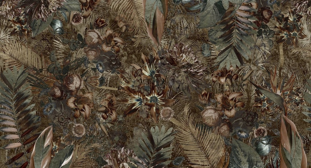 Muance MU13013 Edition 3 Amber Magari - tropikalny mural z motywem liści i kwiatów