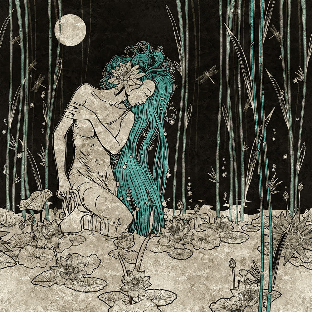 Mural Inkiostro Bianco GoldenWall INKROJY1801 Bluemoon to pomysł na stylowe i eleganckie ozdobienie pustej ściany w naszym domu lub mieszkaniu. Ponadczasowy motyw kwiatowy przedstawia piękną roślinność i brodzącą pośród wodnych lilii uwodzicielską nimfę ze wspaniałymi, błękitnymi włosami. Możemy dostrzec również przelatujące ważki oraz rozświetlający całość księżyc w pełni. Stonowana kolorystyka wprowadza spokojny, odprężający nastrój. Mieniące się odblaskami złota elementy nadają niezwykłej elegancji. Fototapeta Inkiostro Bianco GoldenWall INKROJY1801 Bluemoon pięknie komponuje się w otoczeniu nowoczesnych elementów wyposażenia we wnętrzach pokoju dziennego, sypialni oraz przedpokoju.