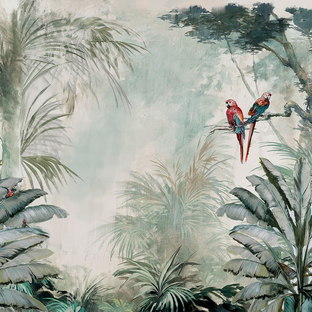 Mural Inkiostro Biancko Sang Real INKOVOT1901 MONTSALVAT LIMITED to wyjątkowy pomysł na stworzenie we wnętrzu każdego pomieszczenia słonecznej atmosfery. Inspirowany tropikalną naturą motyw przedstawiający rajską zieleń zachwyca swoim urokiem oraz wprowadza nutkę orzeźwienia. Dwie przyciągające uwagę siedzące na gałęzi papugi są symbolem piękna i inteligencji. Kolorystyka muralu utrzymana jest w naturalnych barwach dżungli z przeważającymi odcieniami zieleni. Odrobiny kontrastu dodają dwie kolorowe przedstawicielki tropikalnej fauny. Fototapeta Inkiostro Biancko Sang Real INKOVOT1901 MONTSALVAT LIMITED sprawdzi się w każdej aranżacji wnętrza salonu, sypialni oraz jadalni z jasnymi dodatkami.