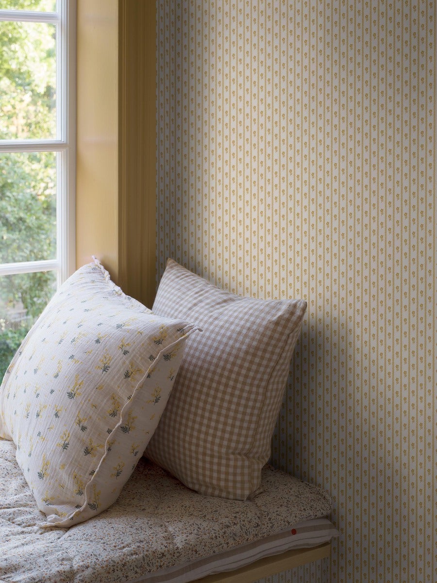Tapeta Boras Tapeter Osterlen Lilla Lyckan 6953 zachwyca subtelnym rytmem drobnych kwiatowych ornamentów, które delikatnie wiją się wzdłuż pionowych pasów, nadając wnętrzu elegancki i uporządkowany charakter. Ręcznie malowane detale wprowadzają do przestrzeni finezję tradycyjnego rzemiosła, a harmonijny układ wzoru dodaje lekkości i spokoju. Smukłe linie optycznie wydłużają ściany, sprawiając, że pomieszczenie staje się bardziej przestronne i jasne. Tapeta Boras Tapeter 6953 Osterlen Lilla Lyckan pozostaje subtelna, ale pełna wyrazu, oferując dekorację, która dodaje wnętrzu przytulności bez nadmiernej ozdobności. Każdy detal oddaje inspirację historycznym wzornictwem, tworząc tapetę, która emanuje ponadczasowym wdziękiem.