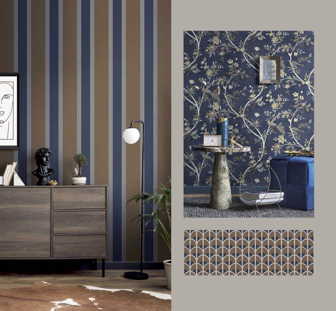 Kolekcja Cristiana Masi Thema pełna jest klasycznych, ponadczasowych i eleganckich wzorów. Dostępne w niej tapety prezentują m.in. paski, geometryczne wzory inspirowane art deco, roślinne kompozycje, pepitkę czy ornamenty. Fani strukturalnych dekoracji ściennych o fakturze płótna również znajdą w tej kolekcji coś dla siebie.