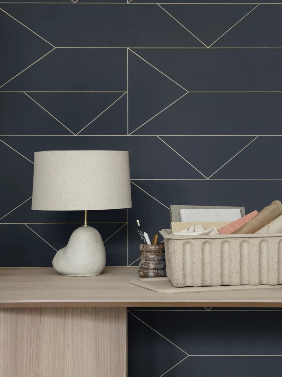 Ferm Living 171 Lines Dark blue - tapeta w złote linie