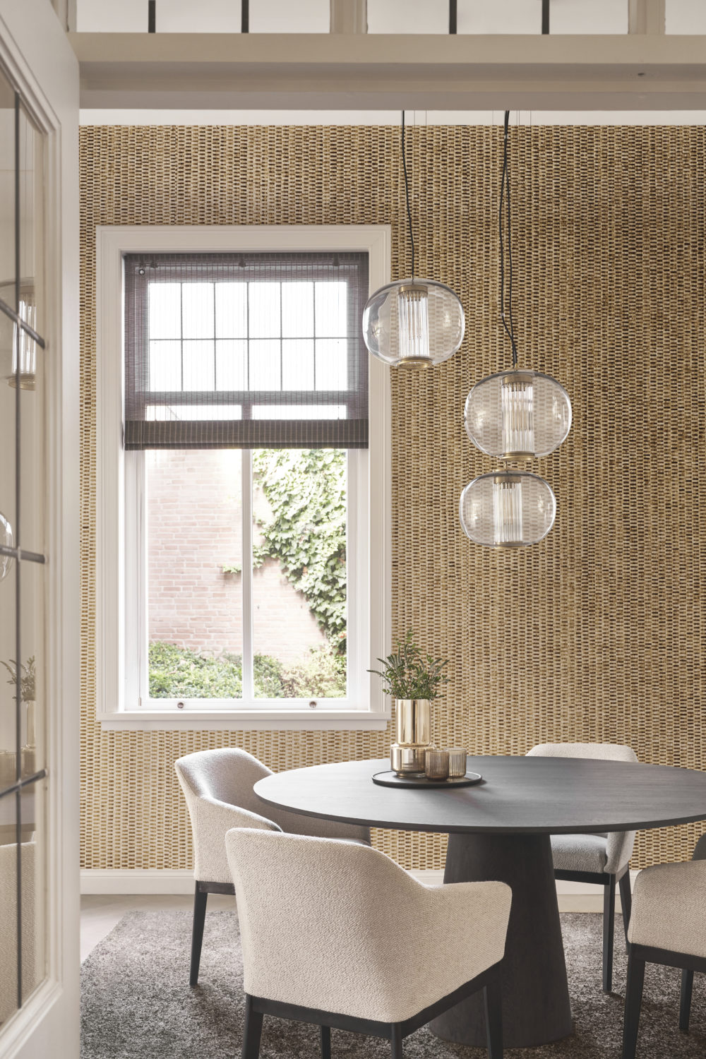 Tapeta Omexco Archipelago ARC32 ukazuje geometryczny motyw złożony z drobnych elementów muszli Capiz, które tworzą równomierną, czytelną strukturę o spokojnym rytmie. Naturalna powierzchnia muszli zapewnia delikatne odbicie światła podkreślające drobną fakturę. Geometryczny układ zaprezentowany na tapecie sprzyja aranżacjom, w których liczy się porządek kompozycji i stonowana estetyka. Materiały wykorzystane w kolekcji, w tym Capiz i mika, wpisują się w ekologiczne podejście producenta oparte na świadomej selekcji surowców. Stabilne podłoże wzmacnia rzemieślniczy charakter dekoracji i potwierdza jej wysoką jakość. Tapeta Omexco ARC32 Archipelago jest odpowiednia do wnętrz, które wymagają spokojnej struktury. Kompozycja podkreśli uporządkowany charakter aranżacji.