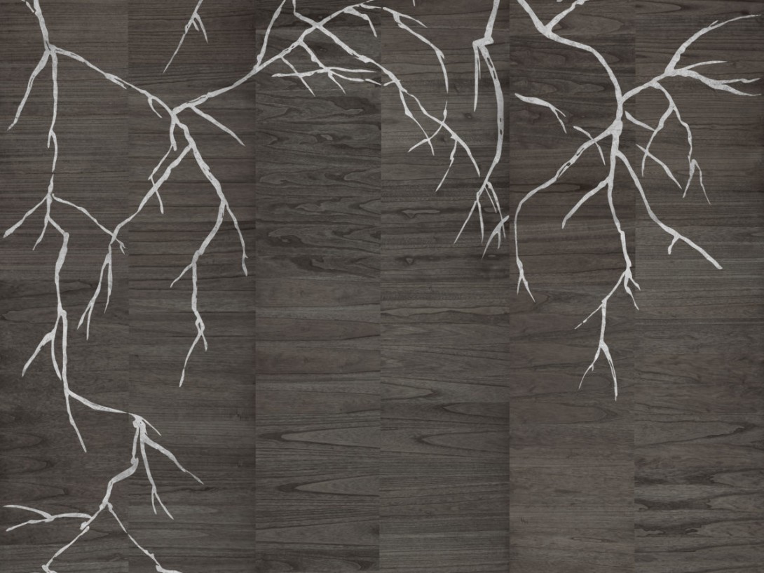 Omexco LAN271 Light at Night - mural z forniru drewnianego w metaliczne drzewo