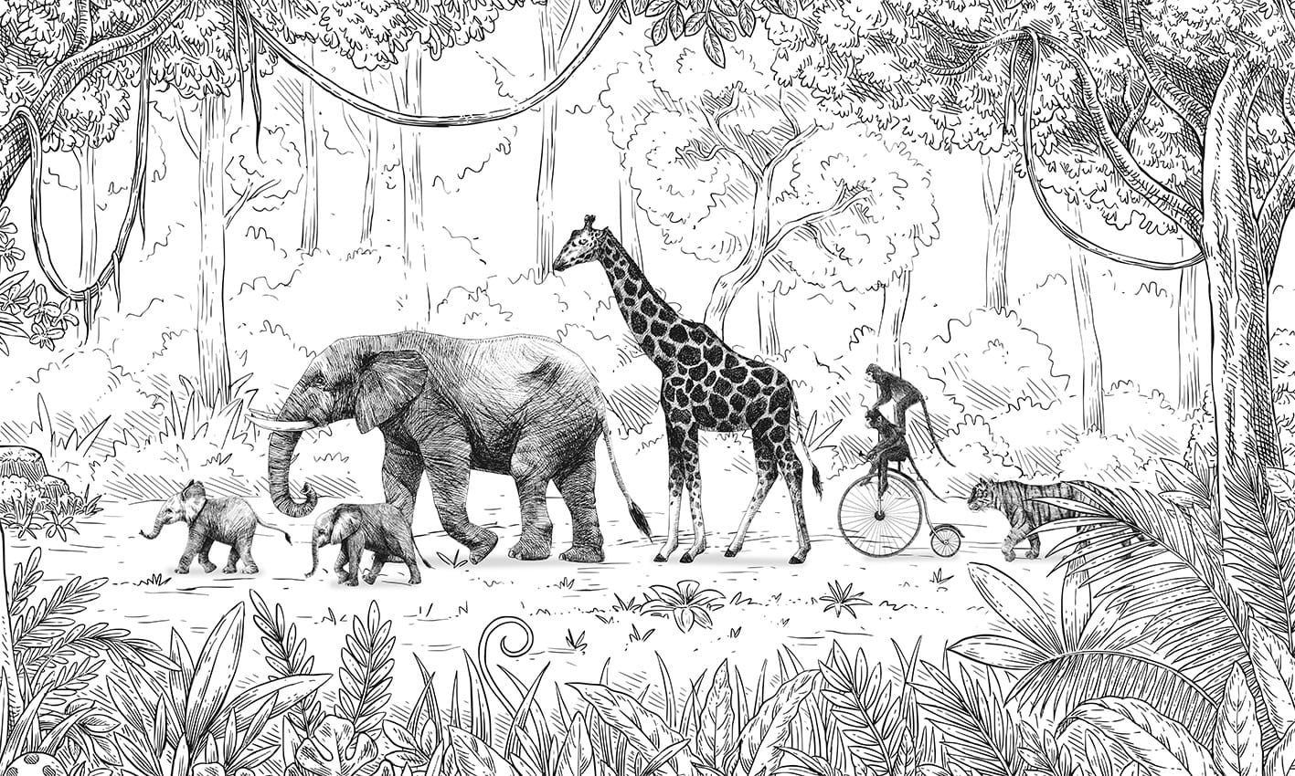 Mural Pastelowelove Animal Parade Czarno-biały wprowadzi do dziecięcej przestrzeni graficzną opowieść o świecie dzikich zwierząt ujętą w oszczędnej, monochromatycznej palecie. Kontrastowe sylwetki słoni, tygrysa, żyrafy i małp stają się elementem dekoracyjnym, który równoważy estetykę i edukacyjną funkcję wzoru. Subtelne tło z tropikalną roślinnością tworzy spokojne, ale niebanalne wrażenie. Dekoracja doskonale komponuje się z nowoczesnymi, skandynawskimi i boho aranżacjami. Piaskowa faktura materiału dodaje powierzchni elegancji i lekkości, podkreślając graficzny charakter ilustracji. Model wykonano na grubym, winylowym podłożu flizelinowym o gramaturze 290 g, które jest odporne na zarysowania i działanie światła. Mural Pastelowelove Animal Parade Czarno-biały spełnia najwyższe normy jakości i bezpieczeństwa, posiadając m.in. certyfikat FSC, oznaczenie A+ oraz Greenguard. To produkt stworzony z myślą o świadomej aranżacji przestrzeni dziecka, gdzie design spotyka się z funkcjonalnością i troską o środowisko i zdrowie.