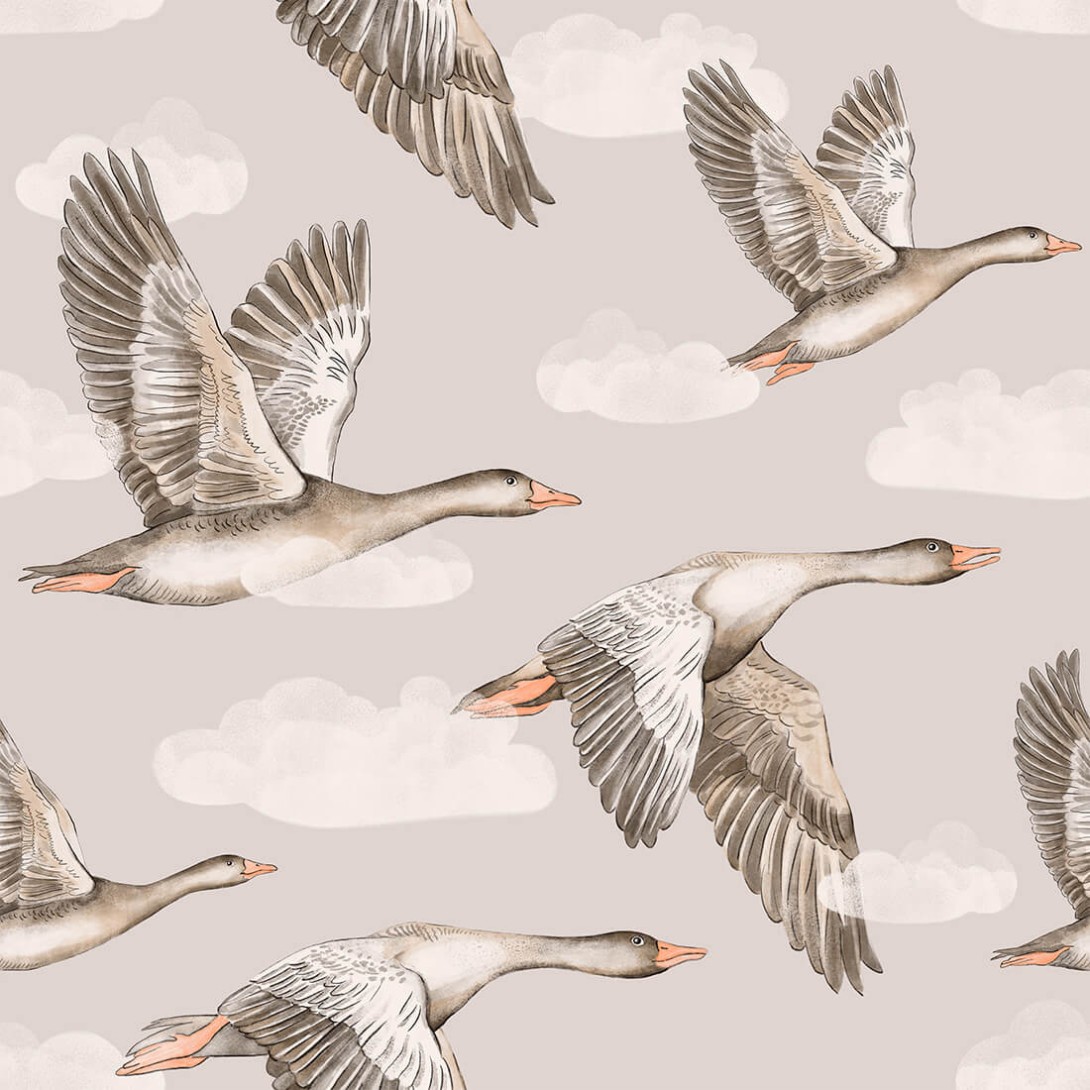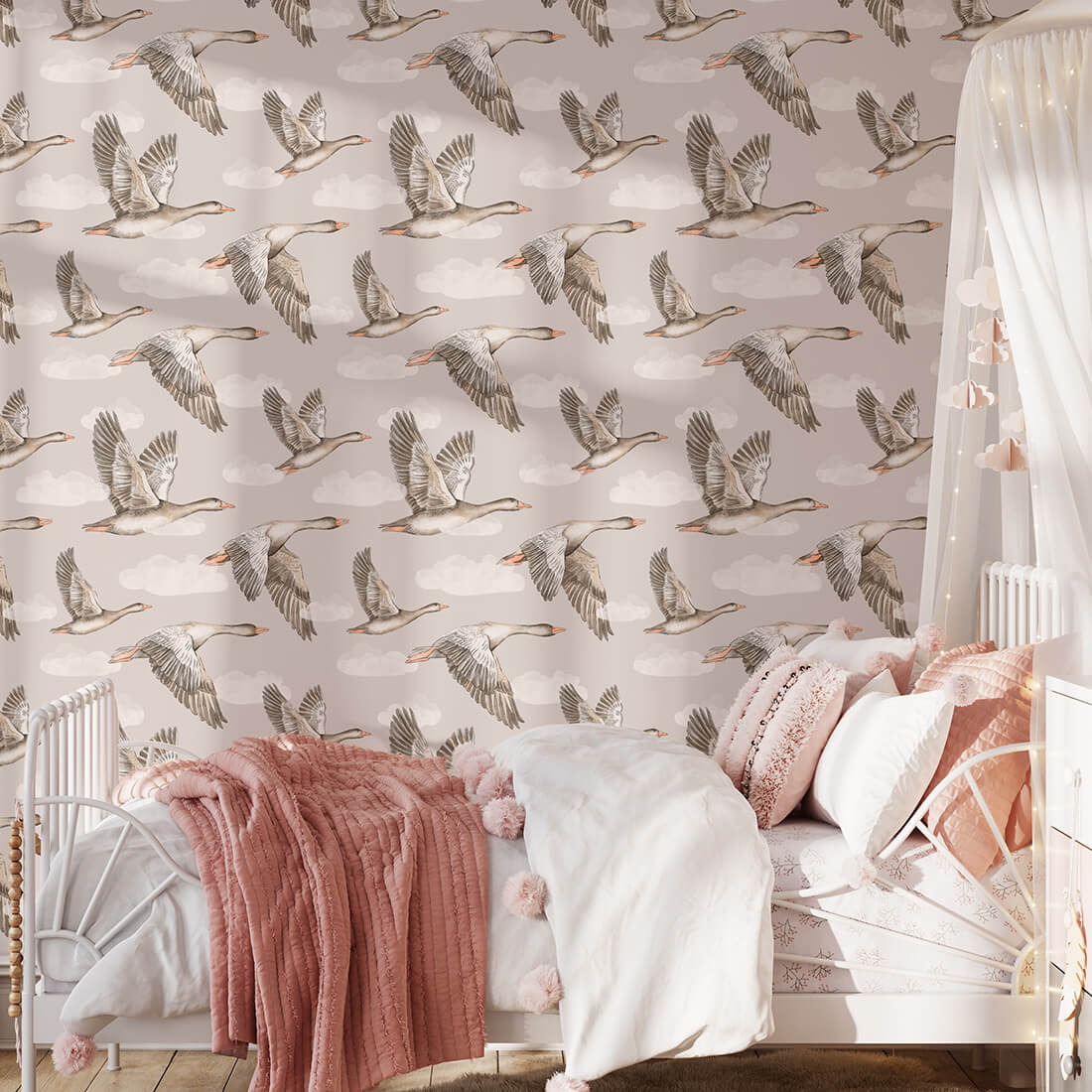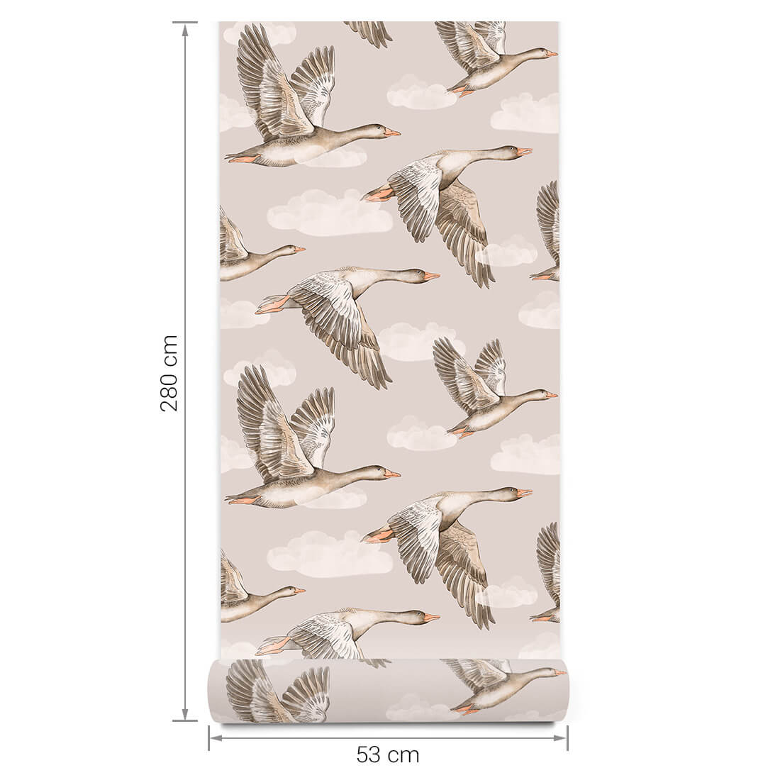 Pastelowelove Gąski Niebieska - tapeta dziecięca w ptaki