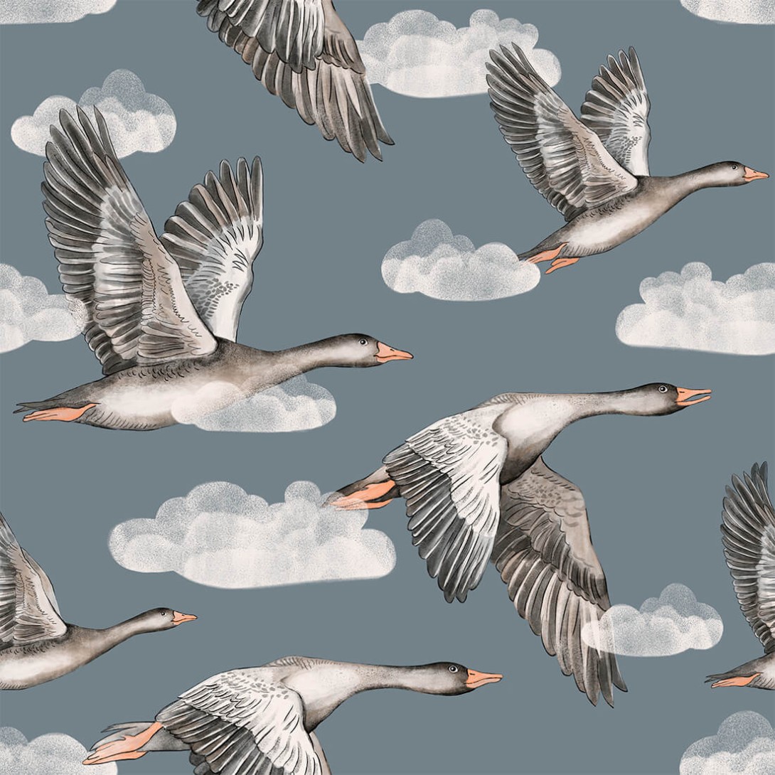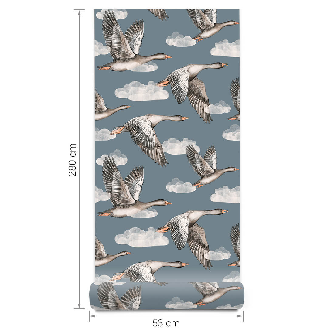 Pastelowelove Gąski Beżowa - tapeta dziecięca w ptaki