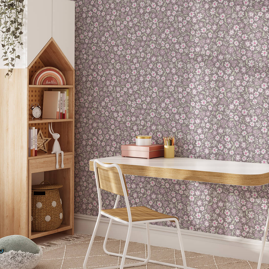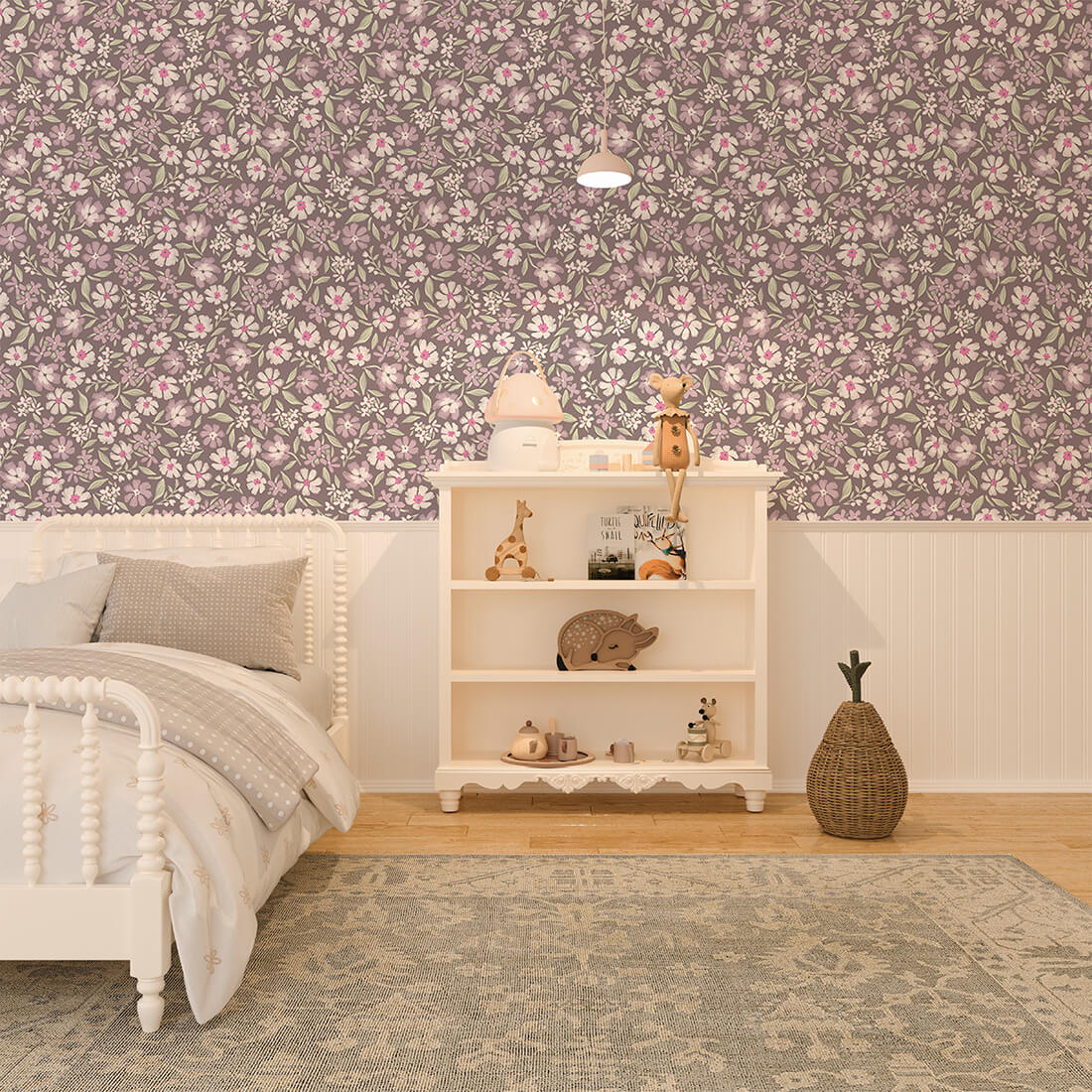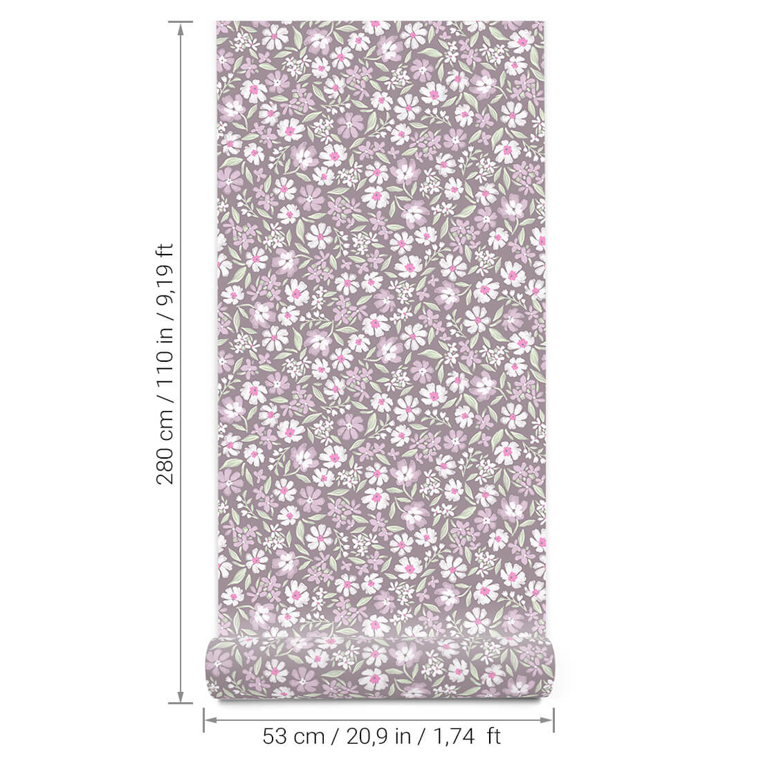 Pastelowelove Mini Stokrotki Śliwkowa - tapeta dziecięca w kwiaty
