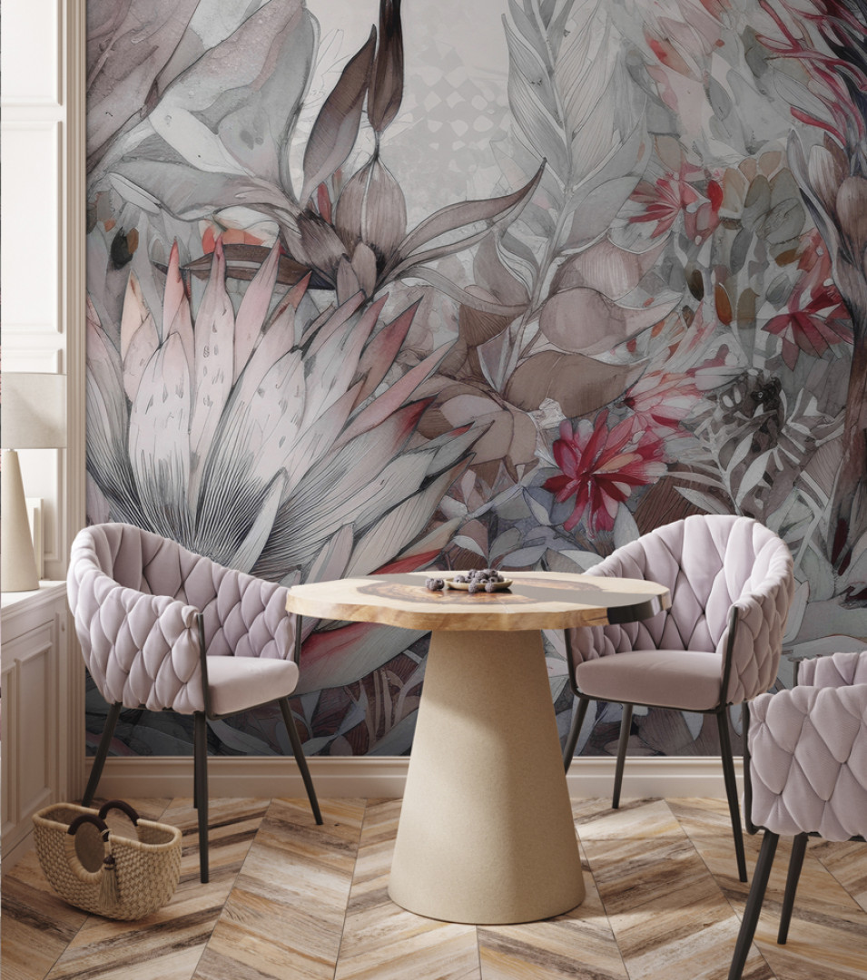 Mural Rauv The First Underwater Rhapsody prezentuje podwodne rośliny i falujące formy organiczne. Delikatne linie i miękkie przejścia barw tworzą kompozycję pełną spokoju, idealną do przestrzeni, w których liczy się balans i harmonia. Wzór doskonale współgra ze stylem modern classic, japandi czy naturalnym minimalizmem, gdzie ważna jest gra faktur i subtelna symbolika natury. Najlepiej zestawia się z materiałami takimi jak drewno w jasnym lub ciemnym wybarwieniu, kamień oraz naturalne tkaniny o miękkim splocie. Zastosowanie podkładu Frosty dodatkowo wzmacnia efekt lekkości i głębi. Mural Rauv The First Underwater Rhapsody nie tylko udekoruje ścianę, ale redefiniuje atmosferę wnętrza, nadając mu wrażenia przestronności i świeżości.