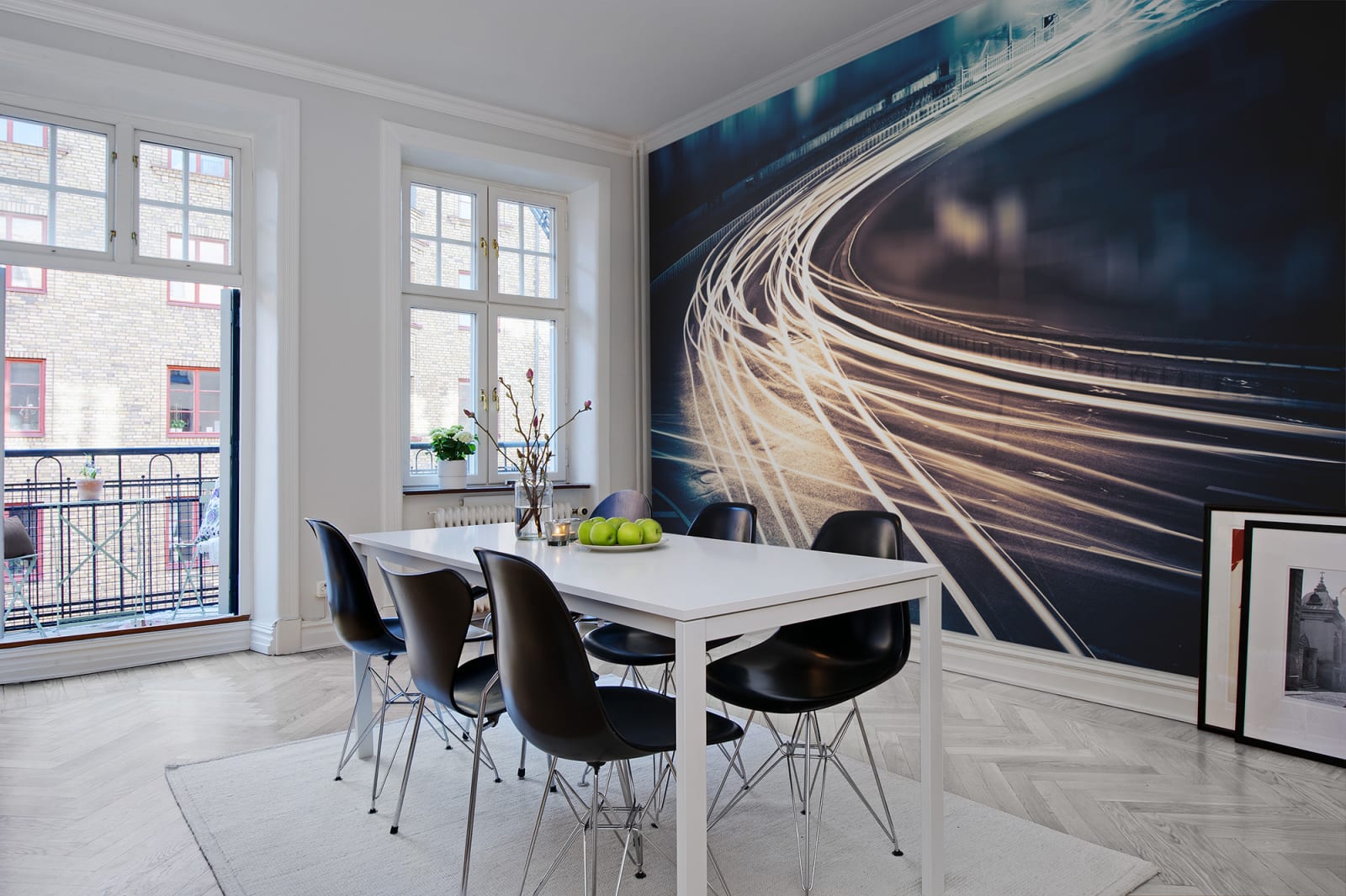 Mural Rebel Walls Panorama R11231 Street Lights to nowoczesna dekoracja o wyjątkowym charakterze. Projekt przedstawia rozmazane światła uliczne złapane w migawce aparatu fotograficznego, a następnie w sposób realistyczny przeniesione na powierzchnię okleiny ściennej. Model dzięki swojej formie doda wnętrzu dynamizmu i niezwykłego ożywienia. Mural Rebel Walls Panorama R11231 Street Lights perfekcyjnie sprawdzi się jako wykończenie wnętrz w stylu nowoczesnym, klasycznym, art-deco, minimalistycznym czy vintage. Będzie ciekawą ozdobą, zdobiącą akcentową ścianie salonu, przedpokoju, łazienki, jadalni, przedpokoju czy sypialni.