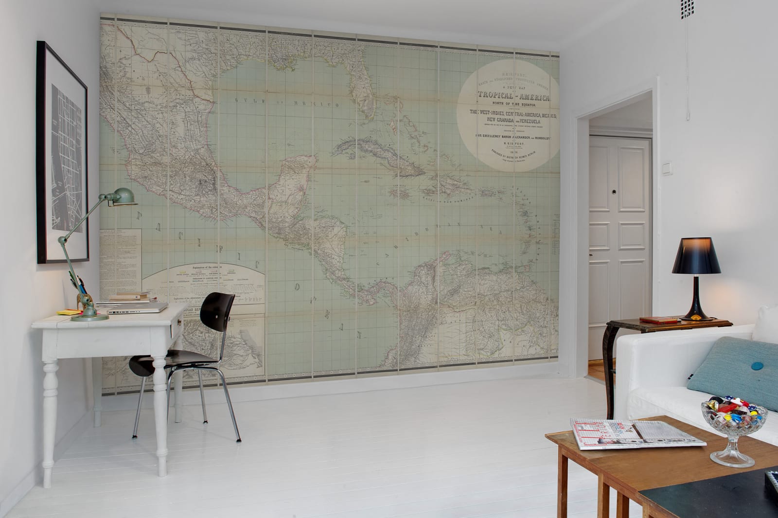 Mural Rebel Walls Panorama R11381 Tropical America to cudowna propozycja o ponadczasowym charakterze, zainspirowana odkryciami geograficznymi. Ta piękna dekoracja przedstawia starą rozkładaną mapę z 1858 roku przedstawiającą tropikalną Amerykę; Indie Zachodnie, Amerykę Środkową, Meksyk, Nowę Granadę i Wenezuelę. Mural Rebel Walls Panorama R11381 Tropical America to ciekawe połączenie współgrające z klasycznymi dodatkami, drewnianym wyposażeniem i miękkimi dywanami. Dekoracja stworzy imponujące tło dla telewizora w salonie, łóżka w sypialni, stołu w jadalni czy lustra w przedpokoju.