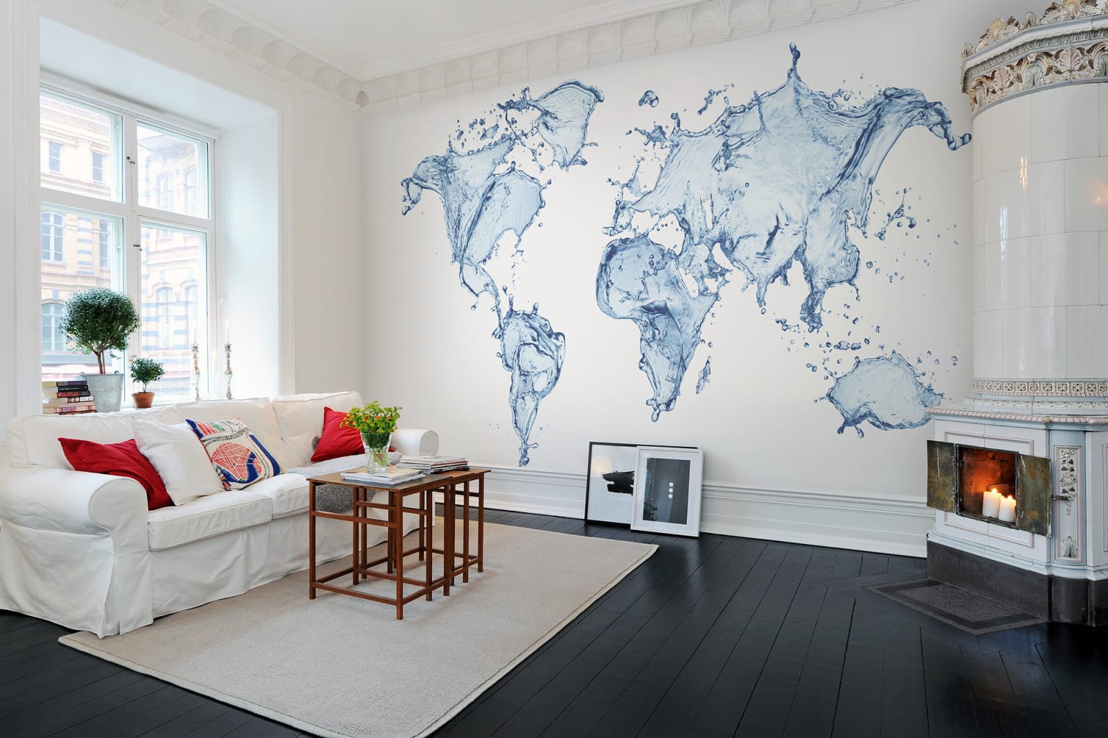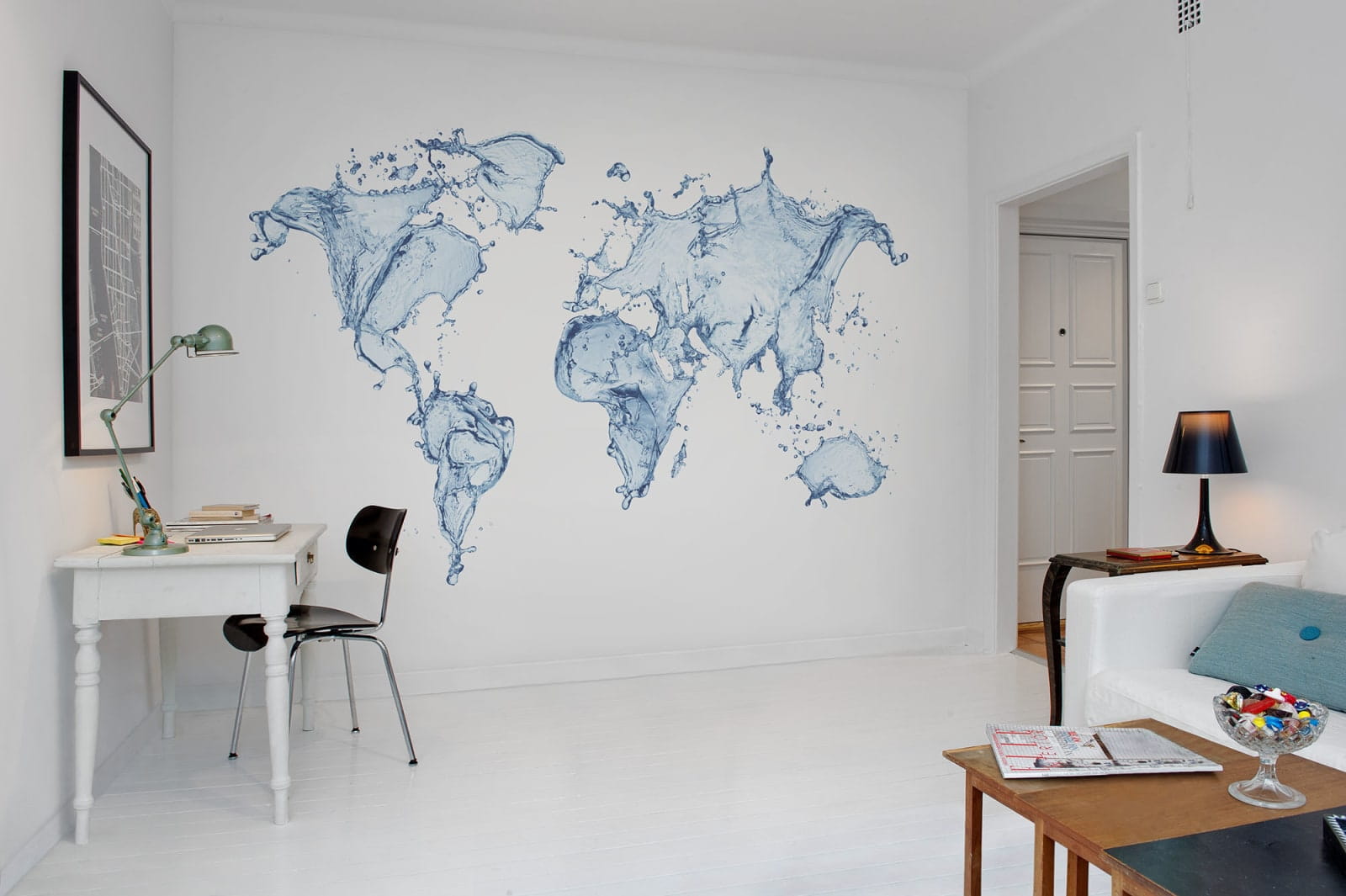 Mural Rebel Walls Panorama R11721 Water World to unikalna dekoracja przedstawiająca kontynenty wypełnione niebieską wodą. To niesamowicie świeża, orzeźwiająca i mokra mapa świata. Mural Rebel Walls Panorama R11721 Water World to wspaniałe rozwiązanie wprost do minimalistycznych, art-deco, klasycznych, vintage czy nowoczesnych aranżacji. Będzie imponującym tłem dla lustra w łazience, łóżka sypialni czy komody w salonie, jednocześnie zdobiąc akcentową ścianę tego pomieszczenia.