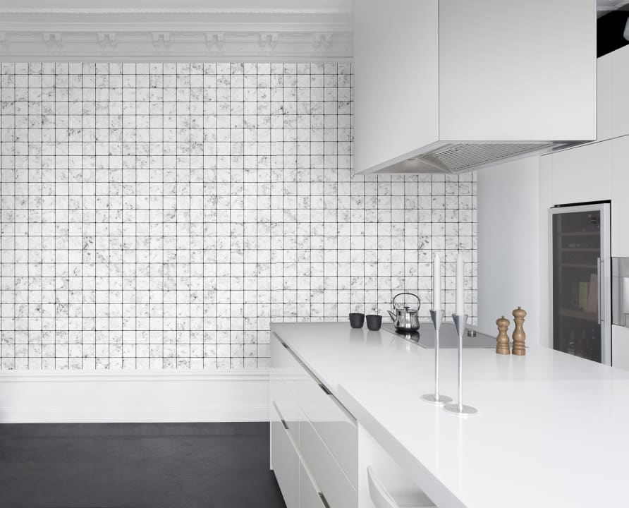 Mural Rebel Walls Panorama R12001 Marble Tiles o bardzo elegancka, klasyczna i nieregularna dekoracja ścienna imitująca marmur w postaci kafelków. Przemyślana gra świateł na powierzchni doskonale odda wyjątkową strukturę marmuru, tworząc niemal trójwymiarowy efekt. Kafelki doskonale podkreślą charakter mebli oraz dodatków. Mural Rebel Walls Panorama R12001 Marble Tiles doskonale sprawdzi się w minimalistycznie i nowocześnie urządzonej jadali oraz salonie.