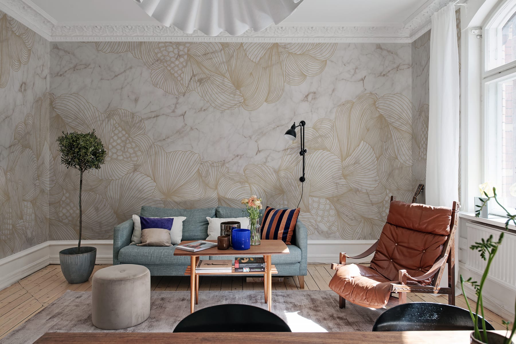 Mural Rebel Walls Rebel Favorites Opulence Marble R17094 to kwintesencja elegancji i wyrafinowania. Prezentuje roślinny, metaliczny wzór zaprezentowany na marmurowym tle - taka kompozycja doda przestrzeniom luksusowego tonu. Dekoracja ma ponadczasowy charakter - pozostanie aktualna mimo zmieniających się trendów. Świetnie sprawdzi się w salonach, sypialniach i jadalniach, w każdym z tych pomieszczeń stworzy atmosferę sprzyjającą relaksowi i wyciszeniu. Jej uniwersalność sprawia, że łatwo jest ją połączyć zarówno z klasycznymi meblami, jak i nowoczesnymi, minimalistycznymi elementami wystroju. Mural Rebel Walls Rebel Favorites Opulence Marble R17094 to propozycja dla osób, które chcą stworzyć wnętrze pełne harmonii, ciepła i elegancji. Pięknie zintegruje się on z miejscami w stylu glamour i klasycznym, które potrzebują roślinnego i wyrafinowanego akcentu.