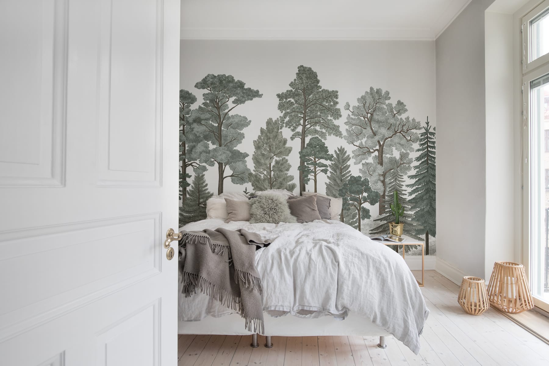 Mural Rebel Walls Rebel Favorites Scandinavian Bellewood Frost R17202 to minimalistyczna dekoracja, która wniesie do wnętrza naturalny i spokojny charakter. Wzór wysokich drzew przyciąga uwagę swoją prostotą i elegancją. Dzięki niemu pomieszczenie nabierze harmonii i przestronności. To doskonały wybór do przestrzeni, w których się relaksujesz - np. do salonu, sypialni czy jadalni. Mural Rebel Walls Rebel Favorites Scandinavian Bellewood Frost R17202 pasuje do wnętrz utrzymanych w stylu skandynawskim, w których dominują naturalne materiały, takie jak drewno, wełna czy bawełna. Idealnie komponuje się z meblami o prostych liniach i neutralnych kolorach. Wprowadzenie tej dekoracji do przestrzeni to sposób na stworzenie spokojnej atmosfery, która sprzyja relaksowi i odpoczynkowi. Wzór drzew doda wnętrzu naturalnego uroku, jednocześnie nie dominując nad resztą wystroju.