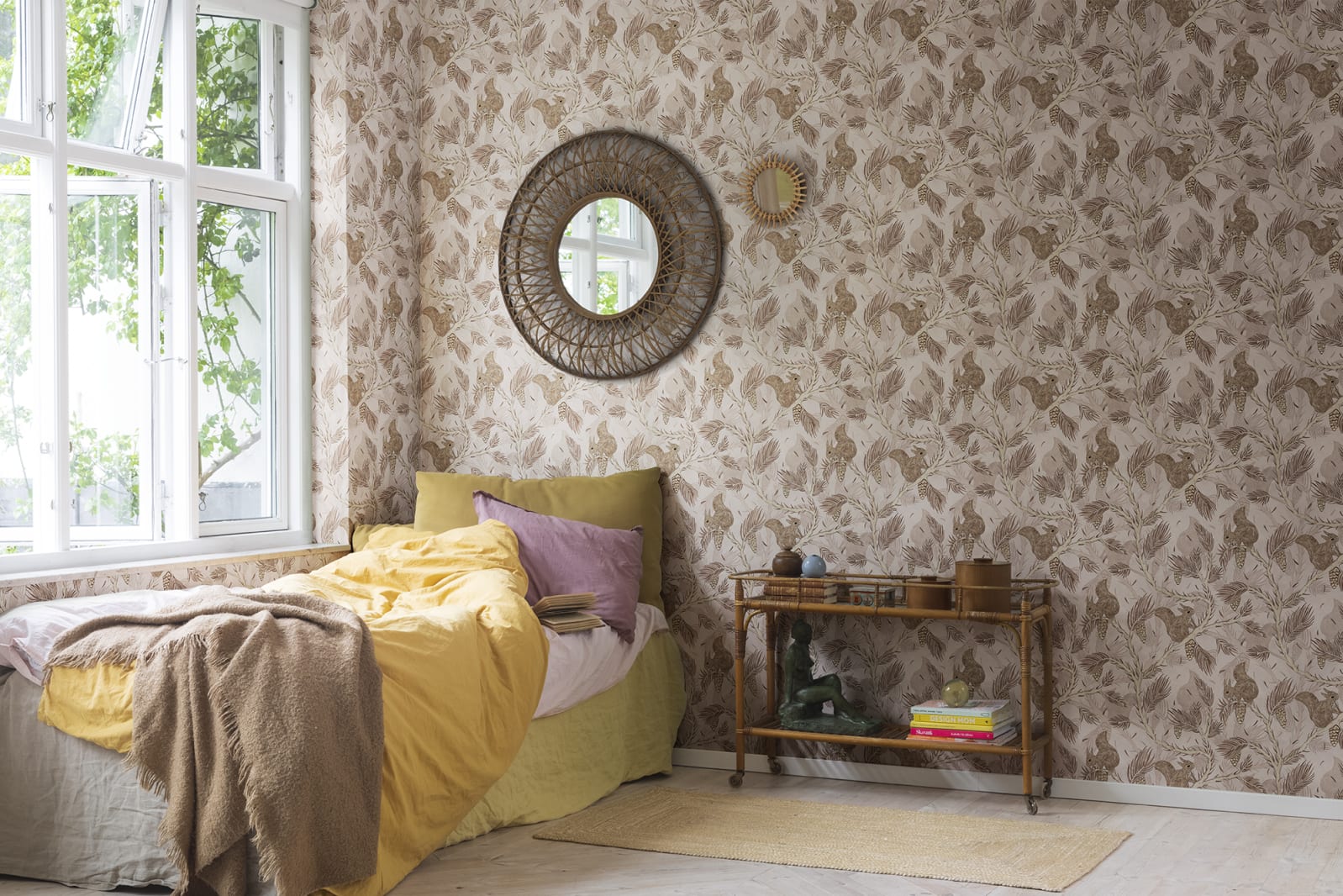 Rebel Walls R17983 Dreamland Squirrel Mountain Sand - tapeta z wiewiórkami
