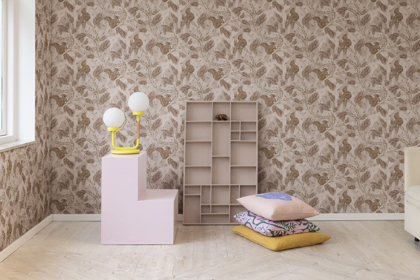 Tapeta Rebel Walls Dreamland Squirrel Mountain Pink R17981 przedstawia małe wiewiórki skaczące w koronie potężnej sosny na tle o pięknym, różowym kolorze. Może szukają najsmaczniejszej szyszki? To zabawna gra, w której zwycięzca znajdzie najlepszą szyszkę. Tapeta Rebel Walls Dreamland Squirrel Mountain Pink R17981 to dekoracja wprost do pokoiku Twojego malucha! Wzór nie tylko ozdobi wnętrze, ale sprawdzi się również w wyznaczaniu przestrzeni do snu, nauki czy zabawy. Model dostępny jest w trzech wersjach kolorystycznych.