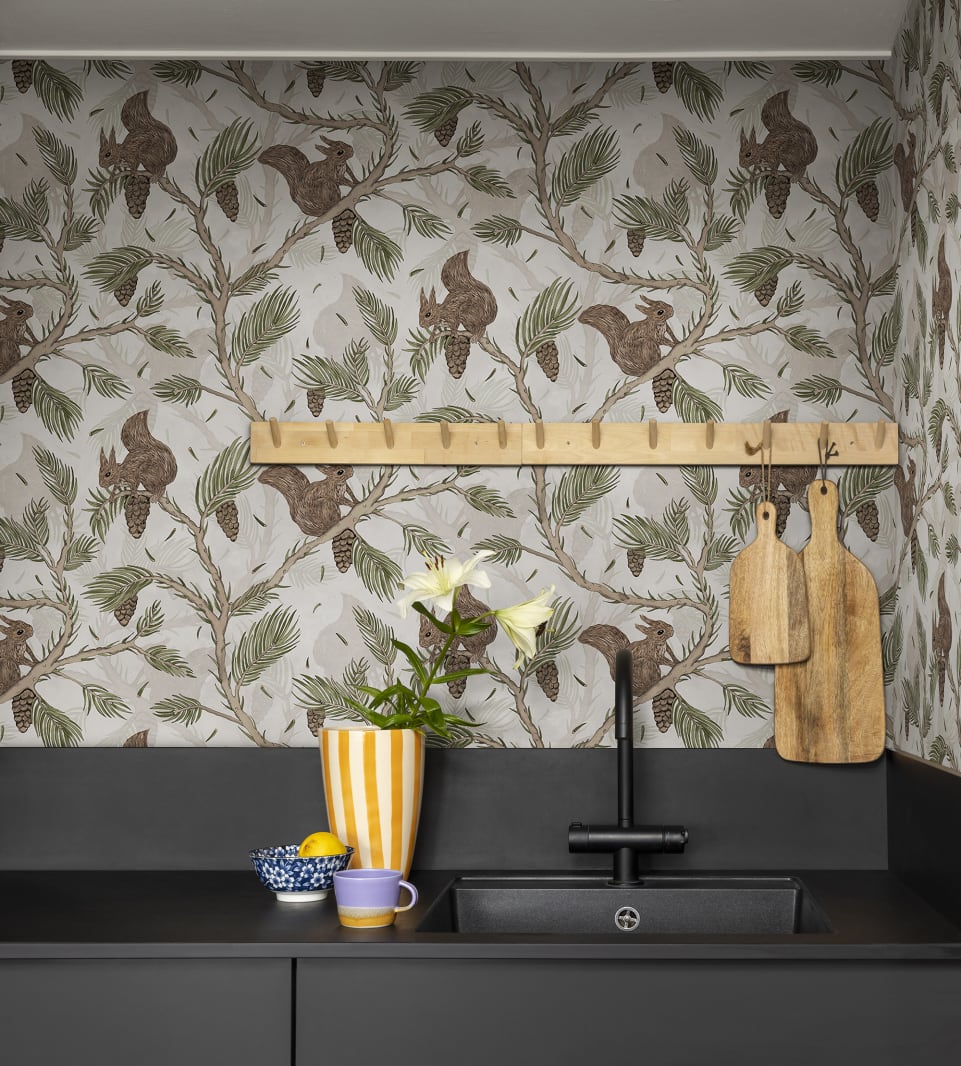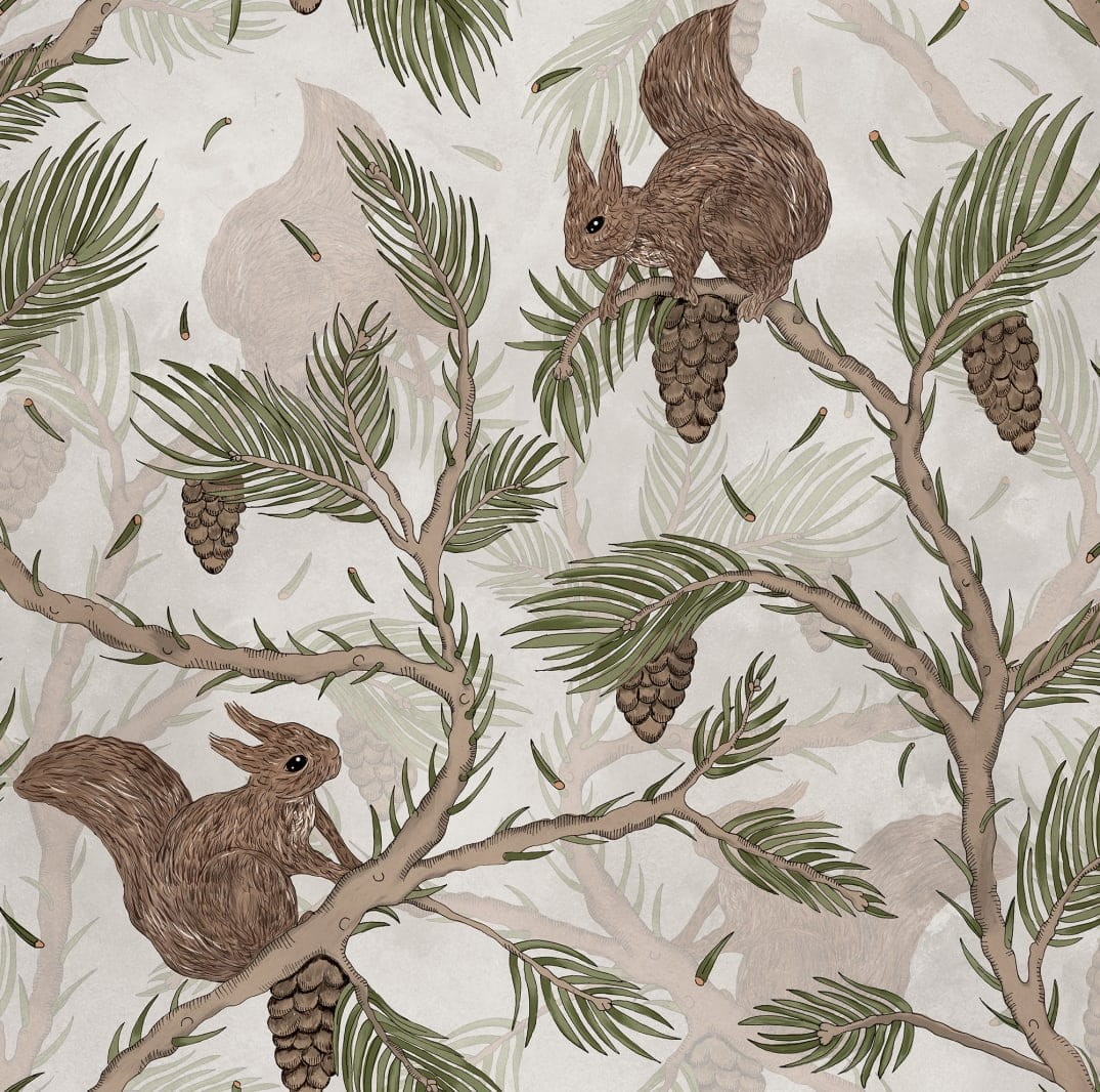 Tapeta Rebel Walls Dreamland Squirrel Mountain Sand R17983 przedstawia małe wiewiórki skaczące w koronie potężnej sosny na tle o pięknym, piaskowym kolorze. Może szukają najsmaczniejszej szyszki? To zabawna gra, w której zwycięzca znajdzie najlepszą szyszkę. Tapeta Rebel Walls Dreamland Squirrel Mountain Sand R17983 to dekoracja wprost do pokoiku Twojego malucha! Wzór nie tylko ozdobi wnętrze, ale sprawdzi się również w wyznaczaniu przestrzeni do snu, nauki czy zabawy. Model dostępny jest w trzech wersjach kolorystycznych.