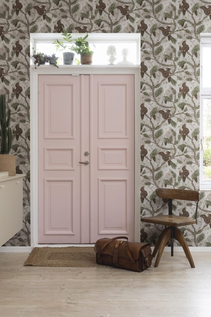 Rebel Walls R17981 Dreamland Squirrel Mountain Pink - tapeta z wiewiórkami