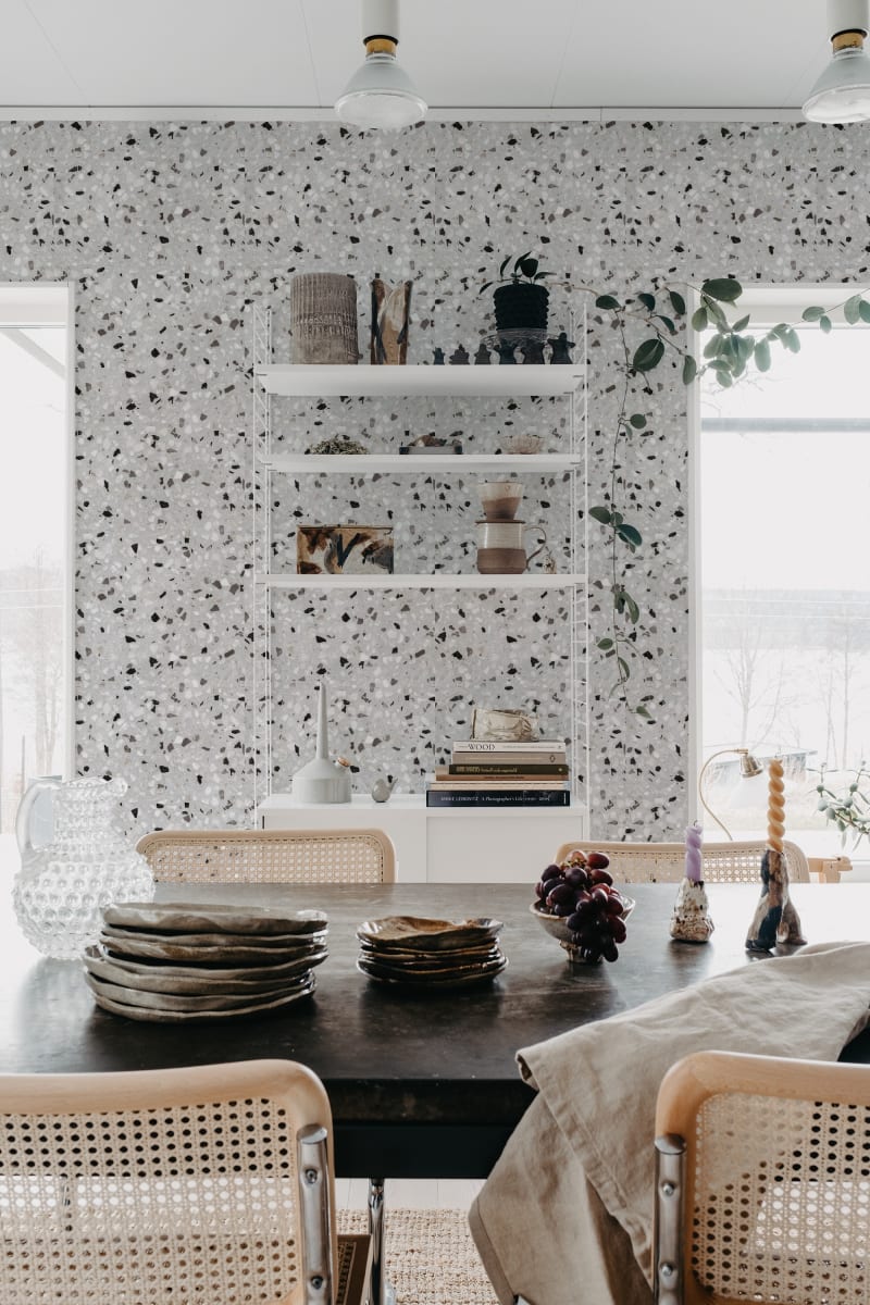 Tapeta Rebel Walls Pops Terazzo Ocean Stone Grey R18571 imituje lastryko, które od lat cieszy się niesłabnącą popularnością w świecie aranżacji wnętrz. Oryginalny układ drobnych elementów w różnych odcieniach sprawia, że dekoracja doda ścianom życia i oryginalności. Idealnie pasuje do wnętrz, które łączą nowoczesność z nutą retro. Jej uniwersalność sprawia, że można ją zastosować zarówno w salonie, jak i jadalni, kuchni czy gabinecie. Oryginalna imitacja lastryko wprowadzi do wnętrza niepowtarzalny rytm i teksturę, która przyciąga uwagę, ale nie dominuje nad resztą aranżacji. Dzięki ponadczasowemu charakterowi Tapeta Rebel Walls Pops Terazzo Ocean Stone Grey R18571 świetnie sprawdzi się w minimalistycznych, jak i bardziej dekoracyjnych wnętrzach.