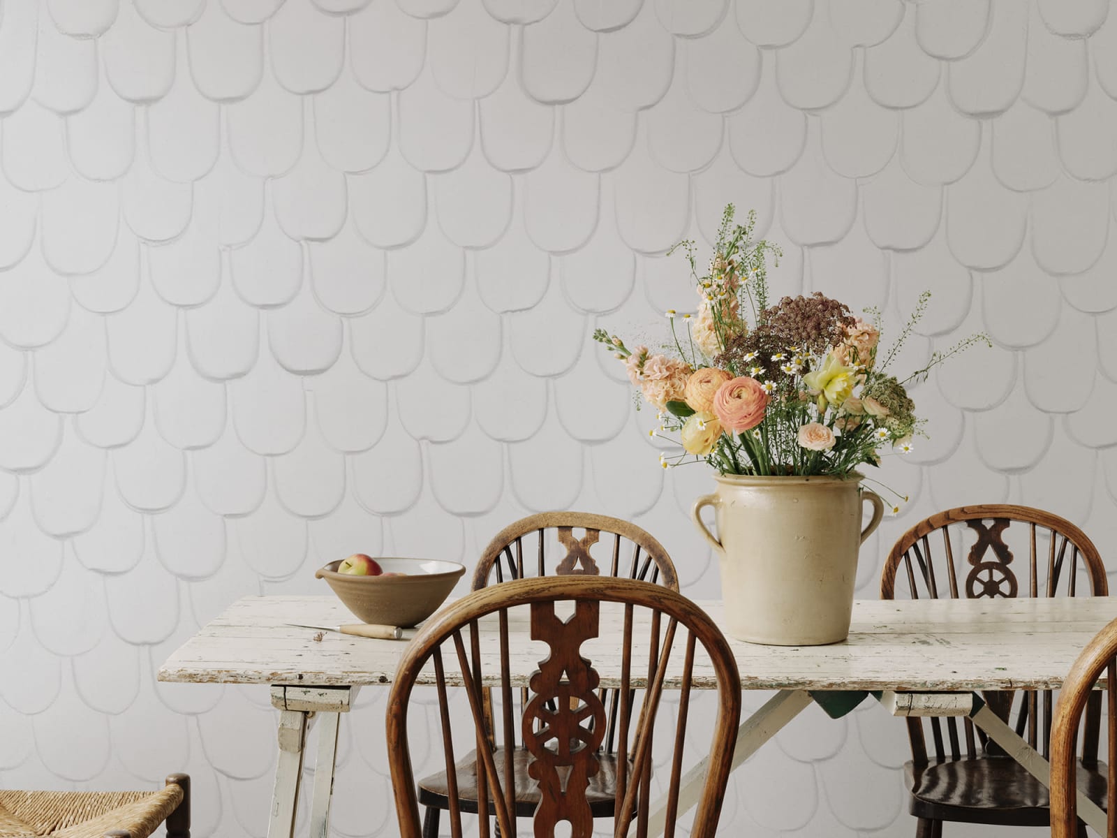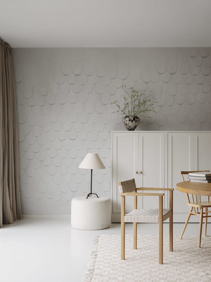 Mural Rebel Walls Natural Aesthetic Tab Clay R18744 ma trójwymiarowy charakter. Kompozycja została najpierw wykonana ręcznie w glinie, a następnie wprowadzona do świata cyfrowego, który umożliwił jej powielenie na muralu. Projekt ma miękki i organiczny charakter. Sprawia, że chce się do niego podejść i go dotknąć, aby poczuć pod opuszkami palców glinę. Świetnie sprawdzi się we wnętrzach rustykalnych, boho, skandynawskich oraz japandi. Dzięki starannemu wykonaniu jest trwały i łatwy w montażu. Świetnie przylega do ściany, a w dodatku jest odporny na blaknięcie i bez problemu można go przecierać zwilżoną gąbką w razie zabrudzeń. Jego piękny odcień gliny dodaje wnętrzu wyrafinowanego charakteru, idealnie komponując się z meblami i dodatkami z naturalnych materiałów. Mural można dostosować do różnych rozmiarów ścian, co czyni go uniwersalnym rozwiązaniem dla różnych pomieszczeń. Dla tych, którzy szukają subtelnych i eleganckich akcentów, które ożywią ich przestrzeń, Rebel Walls Natural Aesthetic Tab Clay R18744 - mural trójwymiarowe gliniane łuski jest doskonałym wyborem