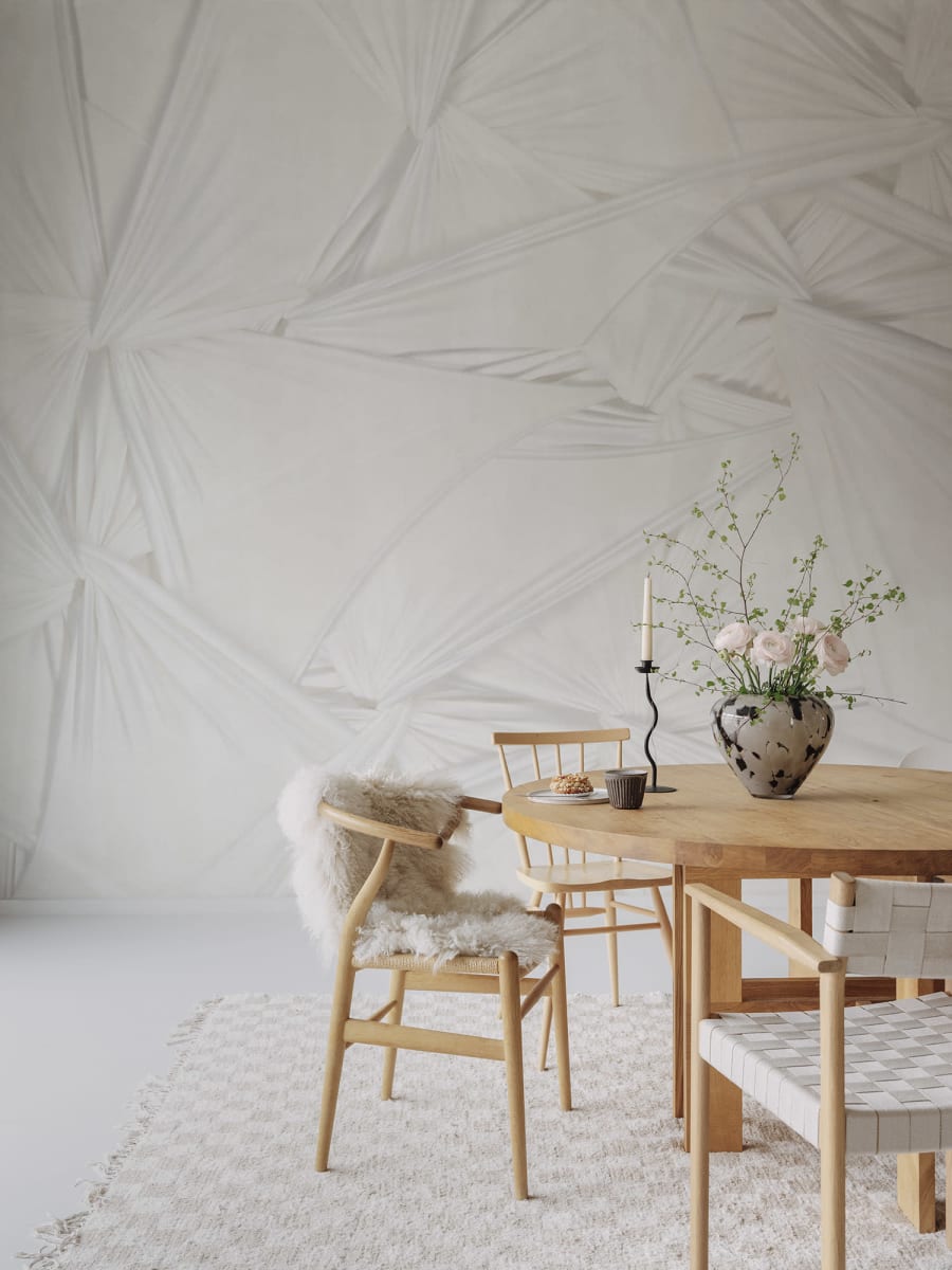 Mural Rebel Walls Natural Aesthetic Silk Shadows White R18757 to esencja elegancji i delikatności, która wprowadzi do Twojego wnętrza subtelny, luksusowy akcent. Jego wzór imituje delikatne cienie na jedwabnej tkaninie, nadając ścianom niezwykłego uroku i głębi. Neutralna paleta barw wypełniona beżem i brudną bielą sprawia, że mural doskonale komponuje się z różnymi stylami aranżacyjnymi - od nowoczesnego po klasyczny. Można go z powodzeniem zastosować w sypialni, salonie czy holu tworząc eleganckie i spokojne wnętrza. Dzięki wysokiej jakości materiałowi i starannemu wykonaniu mural ten prezentuje się niezwykle realistycznie, a jego trwałość gwarantuje długotrwałe zachowanie świeżości i piękna. Montaż jest prosty, a mural łatwy w utrzymaniu czystości, co sprawia, że jest praktycznym i estetycznym wyborem dla każdego domu. Rebel Walls R18757 Natural Aesthetic Silk Shadows White - ten mural imitujący jedwab to więcej niż zwykła ozdoba. To wyraz elegancji i finezji, który nadaje przestrzeni przytulnego i delikatnego charakteru.