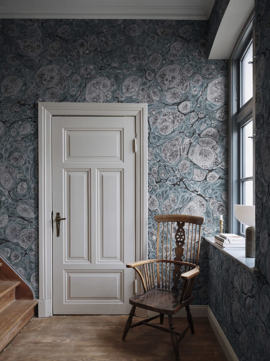Mural Rebel Walls Natural Aesthetic Marbling Blue R18788 wykorzystuje piękno marmuru, ale w inny niż zazwyczaj sposób. Przedstawione kształty, które mają marmurową powierzchnię, są bardzo abstrakcyjne, więc nadają całości niekonwencjonalnego charakteru. Projekt zwraca na siebie uwagę i wyróżnia się spośród murali, które nawiązują do skał i kamieni. Wprowadza w przestrzenie elegancję w niebanalnym wydaniu. Mural dostępny jest aż w czterech różnych barwach, dzięki czemu łatwo jest go połączyć z własnym stylem wnętrzarskim. Poza wizualnym aspektem warto podkreślić, że Rebel Walls R18788 Natural Aesthetic Marbling Blue - mural w marmur jest też niezwykle funkcjonalny. Z łatwością można go wyczyścić zwilżoną gąbką. Położenie go na bardzo nasłonecznionej ścianie nie stanowi problemu, ponieważ specjalistyczne właściwości sprawiają, że mural nie blaknie. W dodatku jest łatwy w instalacji i przyjazny dla środowiska.