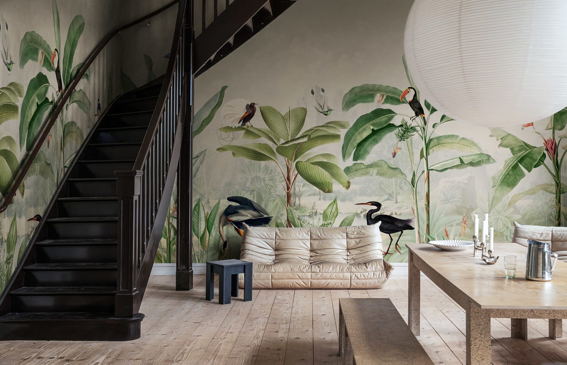 Mural Rebel Walls Scenic Landscapes Tropical Palms Birds R18824 wprowadzi do Twojego wnętrza klimat tropików, dzięki dużym ptakom i pięknym, kołyszącym się na wietrze palmom, za którymi roztacza się zielony krajobraz. Tło dekoracji jest bardzo bogate w detale, jednak kompozycja dzieła została stworzona tak, aby nie przytłoczyć przestrzeni. Dzięki niej Twoja przestrzeń stanie się bardziej harmonijna, przytulna i kolorowa. Model ten dostępny jest łącznie w 3 wersjach kolorystycznych - każdą z nich różnią także pewne detale. Mural Rebel Walls R18824 Scenic Landscapes Tropical Palms Birds idealnie komponuje się z wnętrzami urządzonymi w stylu vintage, boho czy urban jungle. Każdej przestrzeni doda świeżości i designerskiego tonu. Doskonale sprawdzi się w salonie, sypialni czy gabinecie - stworzy w nich klimat zachęcający do relaksu i kreatywnego myślenia.