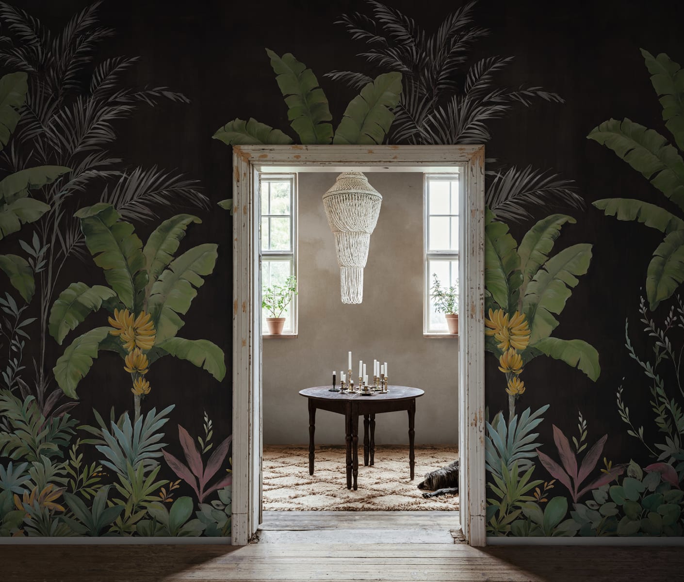 Mural Rebel Walls Scenic Landscapes Banana Tree Jungle Black R18832 przedstawia drzewa bananowca na kontrastującym, pięknym, ciemnym tle. Charakter tej dekoracji jest dynamiczny i żywy, emanuje energią tropikalnej dżungli, która doda pazura każdemu wnętrzu, ale bez efektu przytłoczenia. Dzięki intensywnym kolorom i dynamicznemu wzorowi stworzy uroczą i wyrazistą przestrzeń, która pobudza zmysły. Mural Rebel Walls R18832 Scenic Landscapes Banana Tree Jungle Black pasuje zarówno do nowoczesnych, jak i klasycznych aranżacji. Idealnie komponuje się z wnętrzami inspirowanymi stylem urban jungle, boho lub eklektycznym.