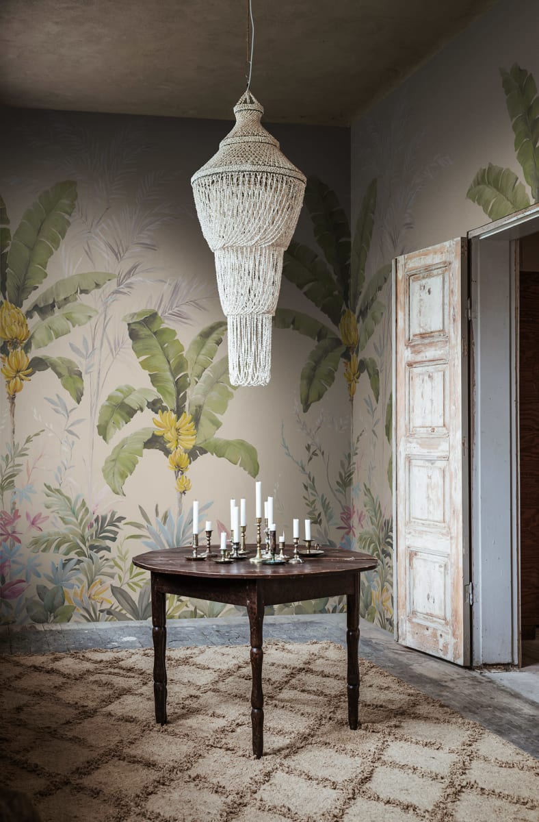 Mural Rebel Walls Scenic Landscapes Banana Tree Jungle Beige R18833 przedstawia drzewa bananowca na pięknym, stonowanym, beżowy tle. Charakter tej dekoracji jest dynamiczny i żywy, emanuje energią tropikalnej dżungli, która doda pazura każdemu wnętrzu, ale bez efektu przytłoczenia. Dzięki intensywnym kolorom i dynamicznemu wzorowi stworzy uroczą i wyrazistą przestrzeń, która pobudza zmysły. Mural Rebel Walls R18833 Scenic Landscapes Banana Tree Jungle Beige pasuje zarówno do nowoczesnych, jak i klasycznych aranżacji. Idealnie komponuje się z wnętrzami inspirowanymi stylem urban jungle, boho lub eklektycznym.