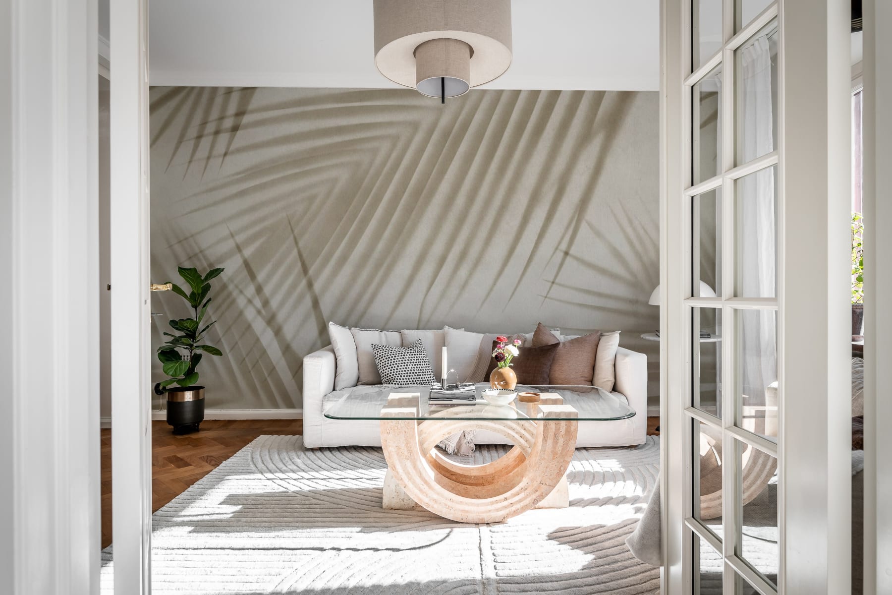 Mural Rebel Walls Mystic Shades Palm Gaze Beige R18888 wnosi do wnętrza uczucie relaksu, które towarzyszy wylegiwaniu się na tropikalnej plaży. Jego delikatnie falujące liście rzucają miękkie cienie, tworząc atmosferę lekkości i spokoju, idealną do stworzenia przestrzeni zachęcającej do wyciszenia. Sylwetki liści są wystarczająco wyraźne, by przyciągać wzrok, ale na tyle delikatne, by nie przytłoczyć wnętrza. Mural Rebel Walls R18888 Mystic Shades Palm Gaze Beige świetnie odnajdzie się w nowoczesnych, minimalistycznych przestrzeniach. Jest także doskonałym wyborem dla wnętrz w stylu boho czy coastal, w których dominują naturalne materiały i jasne, przewiewne tkaniny, podkreślające wakacyjny nastrój.