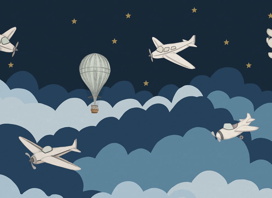 Mural Rebel Walls Pops Fly Away Dark Blue R18931 to wyjątkowa propozycja do pokoju dziecięcego, która zabierze malucha w podróż po dalekich krainach. Przedstawia bajkowy krajobraz z gwiaździstym niebem, unoszącymi się balonami oraz samolotami szybującymi ponad warstwami miękkich chmur. Subtelna paleta kolorystyczna oraz ciekawa, żywa kompozycja sprawiają, że mural wprowadzi do wnętrza atmosferę sprzyjającą wypoczynkowi, jak i kreatywnej zabawie. Wysokiej jakości nadruk zapewnia głębię barw i dbałość o każdy detal. Mural Rebel Walls R18931 Pops Fly Away Dark Blue to idealne rozwiązanie dla rodziców, którzy pragną stworzyć w pokoju swojego dziecka przytulny, ale jednocześnie pobudzający wyobraźnię klimat. Z tą dekoracją stworzysz przestrzeń, w której mali odkrywcy mogą śnić o dalekich podróżach i wielkich przygodach.