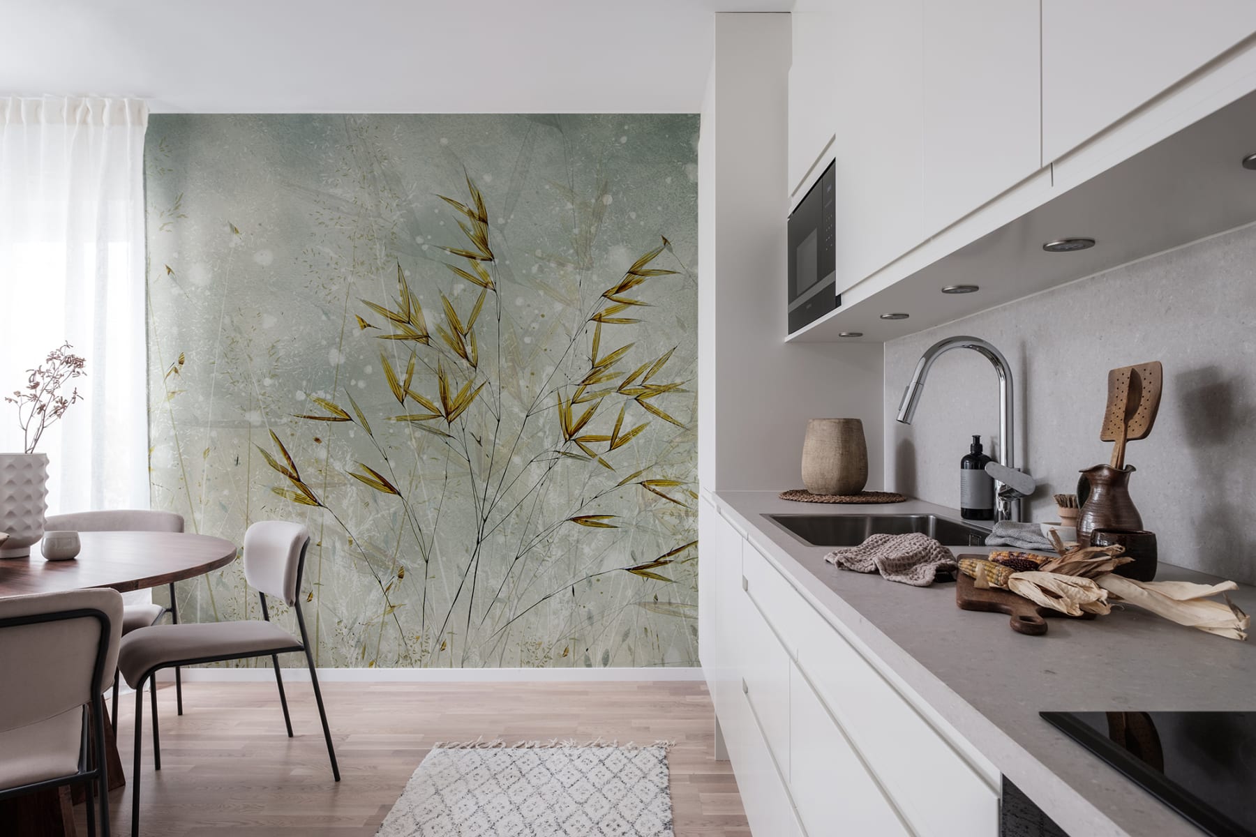 Mural Rebel Walls Pops Golden Grain R19173 to doskonała propozycja dla osób poszukujących subtelnego, naturalnego tła. Zaprezentowany na nim wzór wniesie do przestrzeni eteryczny i elegancki ton - stworzy tło, które nie dominuje, lecz subtelnie dopełnia styl pomieszczenia. Mural Rebel Walls Pops Golden Grain R19173 idealnie komponuje się z wnętrzami, które mają stonowany, spokojny charakter. Sprawdzi się zarówno w pomieszczeniach mieszkalnych, jak i różnego rodzaju lokalach usługowych - np. salonach kosmetycznych. Doskonale komponuje się z dodatkami z naturalnych materiałów, takimi jak lniane zasłony, drewniane elementy wykończenia czy jasne tkaniny, które jeszcze bardziej podkreślą jego subtelny, roślinny charakter. Pięknie prezentować będzie się w miejscach urządzonych w stylu skandynawskim, rustykalnym czy nowoczesnym.