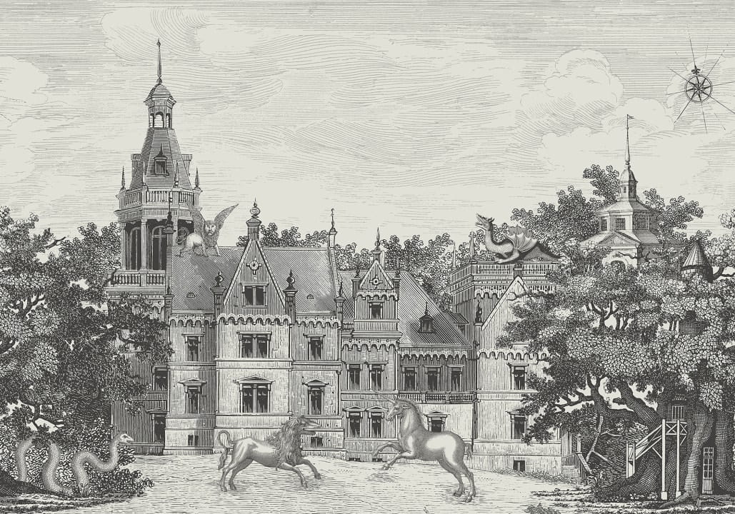 Mural Rebel Walls Vintage Brocade R19256 Fairyland Graphite prezentuje tajemniczą scenerię zamku z magicznymi stworzeniami. Całość wygląda, jakby była naszkicowana, widać na niej najdrobniejsze szczegóły. Czy zauważyłeś wejście do środka drzewa? Tajemniczość i majestat przemawiają od tego modelu. Fairyland Grafphite pobudza wyobraźnię i tworzy niespotykany klimat. Produkt sprawdzi się doskonale we wnętrzach klasycznych oraz w stylu vintage. Mural Rebel Walls Vintage Brocade R19256 Fairyland Graphite dostępny jest w dwóch wersjach kolorystycznych.