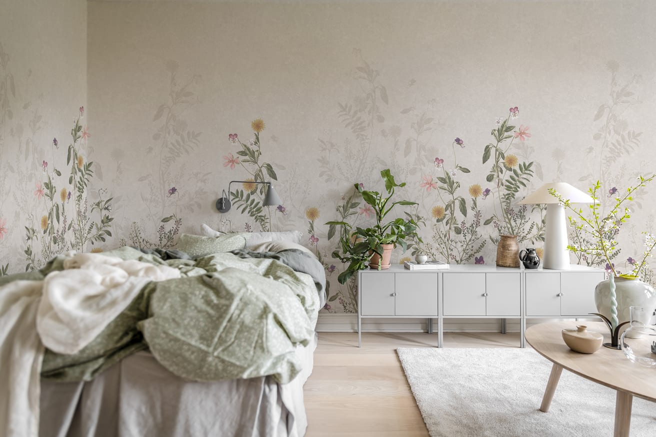 Mural Rebel Walls Stylt R19368 Stormy Meadow Sand przedstawia wzór kwiatowy, który powtarza się warstwami na żywej, nakrapianej podstawie. Centralny punkt wzoru jest tu niski, a tło minimalistyczne, ale jednocześnie dekoracyjne. Projekt został zainspirowany ogarniętą sztormem szwedzką wyspą na zachodnim wybrzeżu i jej roślinnością, która przetrwa wbrew wszelkim przeciwnościom. Mural Rebel Walls Stylt R19368 Stormy Meadow Sand oddaje odczucie, gdy oceaniczna mgła podnosi się, a wytrzymałe kwiaty chętnie sięgają po ciepło słońca. Projekt dostępny jest w dwóch wersjach kolorystycznych.