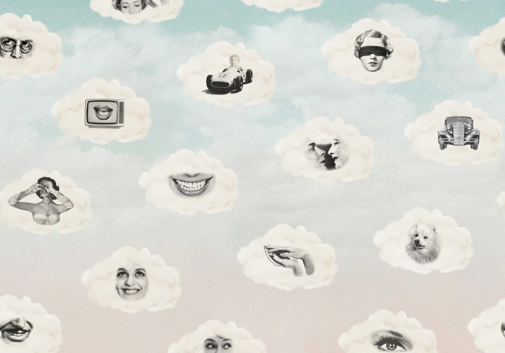 Mural Rebel Walls More is More R19467 Retro Clouds Blue to ciekawa i zabawna dekoracja ścienna wywołująca uśmiechy na twarzach domowników. Projekt przedstawia zdjęcia retro, które umieszczono na miękkich i puszystych chmurkach. Model przypomina jedną, wielką mapę myśli umieszczoną nad głową. Wzór wprowadzi do wnętrza spontaniczną atmosferę, która pobudzi do działania. Mural Rebel Walls More is More R19467 Retro Clouds Blue dostępny jest w dwóch wersjach kolorystycznych.