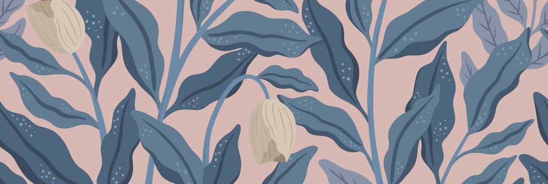 Rebel Walls R19960 Family Fun Cool Flora Beige & Blue - mural w duże liście