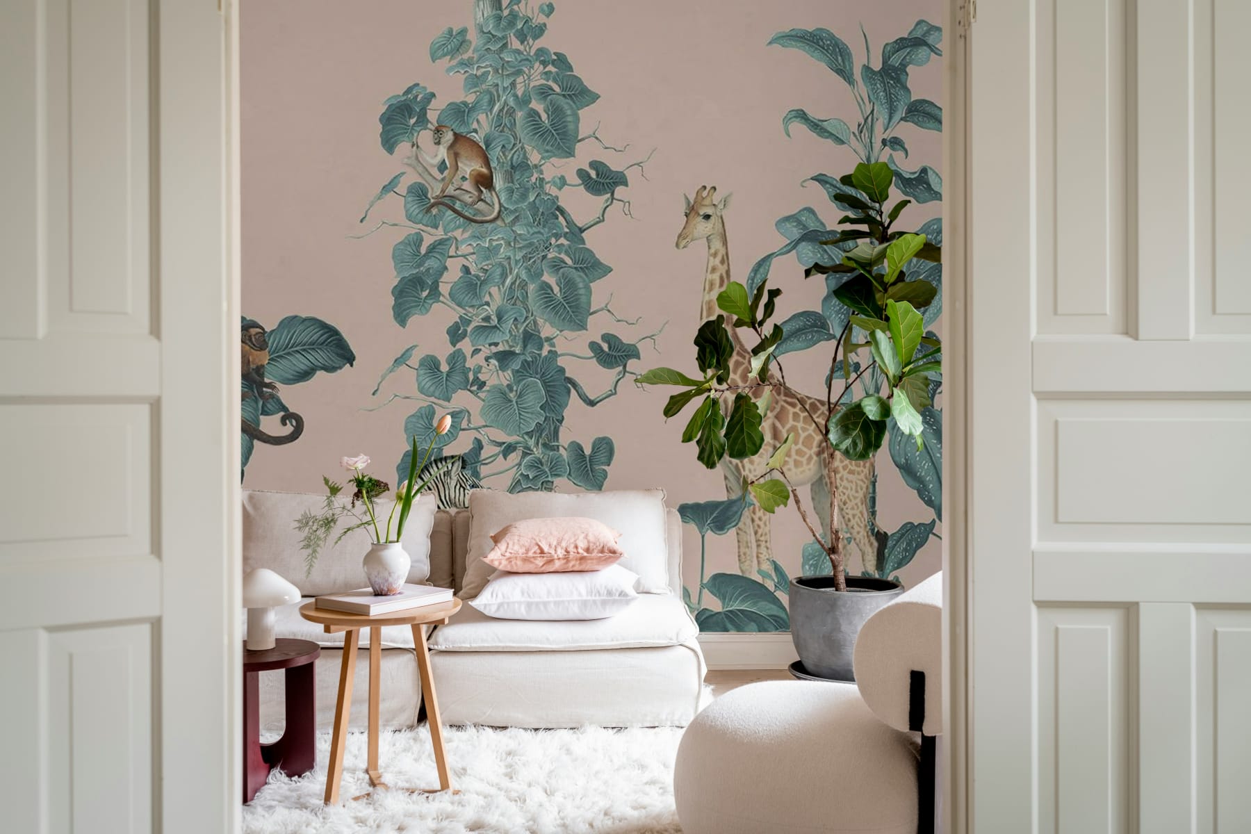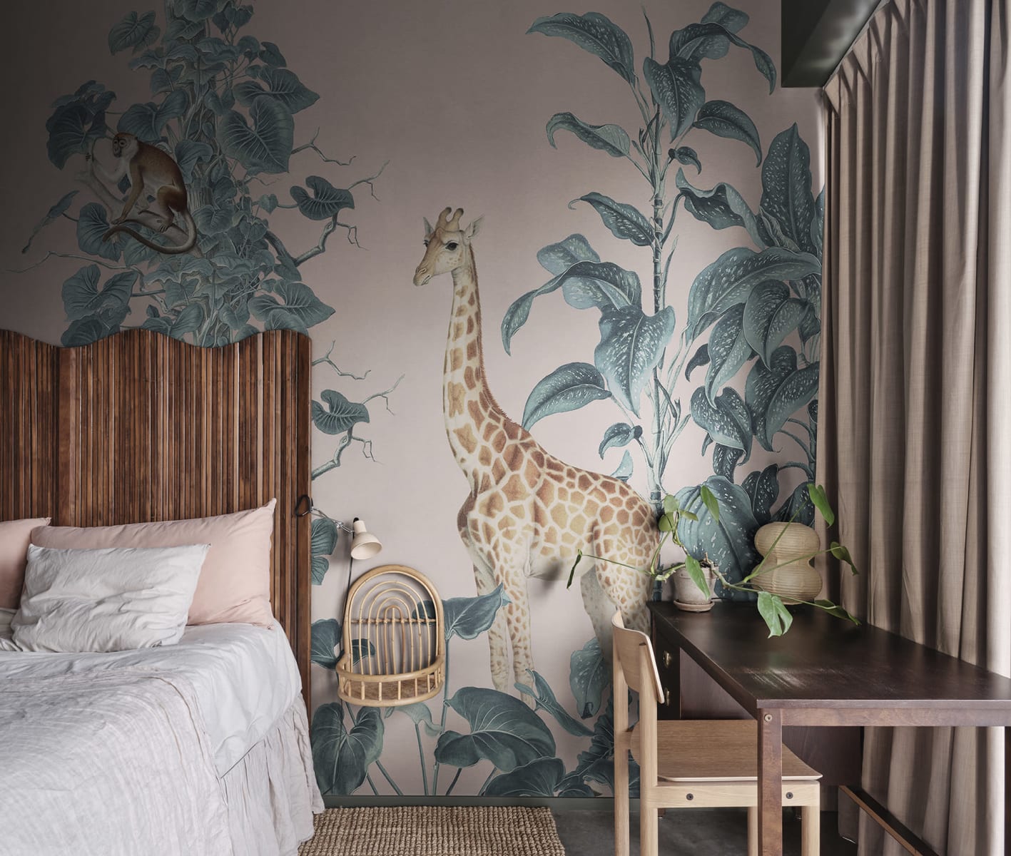 Mural Rebel Walls Family Fun Wildlife Stroll Pink R19992 wprowadzi do pokoju dziecięcego subtelny i ciepły klimat. Prezentuje ponadczasowy motywów egzotycznych zwierząt i roślin. Dekoracja została doskonale zbalansowana, dlatego nie przytłacza, lecz koi i uspokaja, tworząc przyjazną przestrzeń do odpoczynku i zabawy. Delikatnie zarysowane sylwetki egzotycznych zwierząt przeplatają się z dużymi drzewami - wspólnie tworzą spokojną, harmonijną kompozycję. Mural Rebel Walls Family Fun Wildlife Stroll Pink R19992 doskonale nadaje się zarówno dla młodszych, jak i starszych dzieci. Dostępność kilku wersji kolorystycznych tego modelu otwiera masę możliwości aranżacyjne.