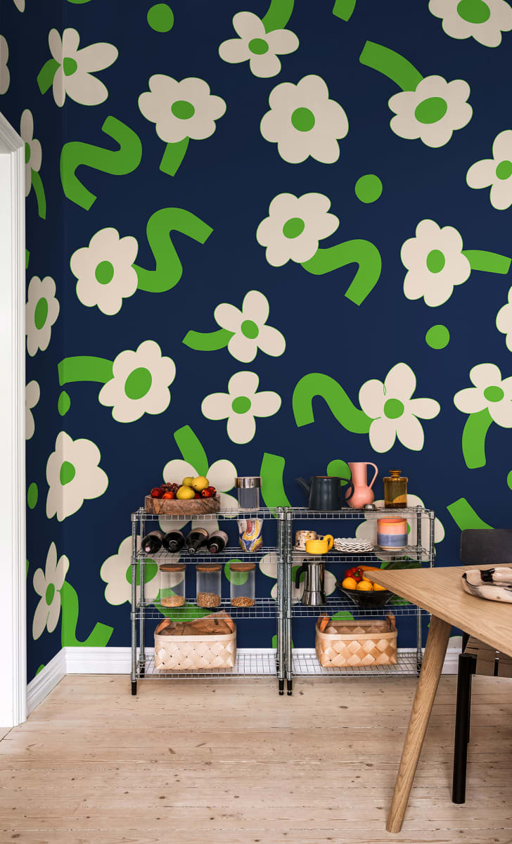 Rebel Walls R20017 Happy Socks Dancing Flower Blue - mural w duże kwiaty stylu retro