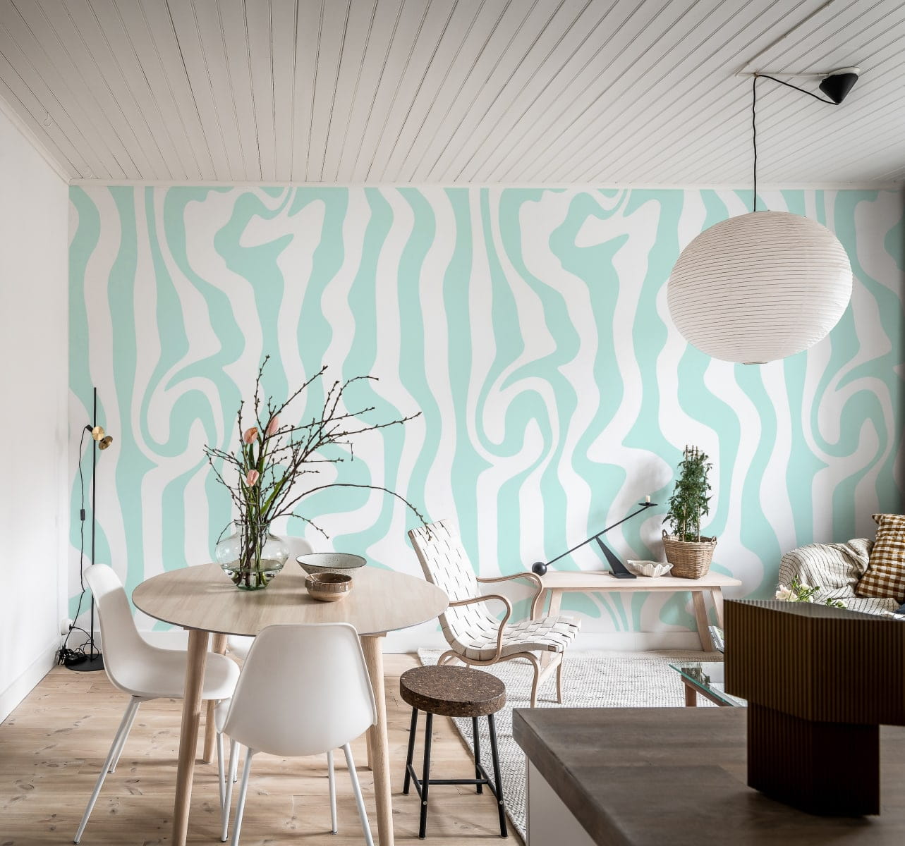 Mural Rebel Walls Happy Socks Dizzy Turquoise R20045 wyróżnia się reto wzorem, który zaprasza do odważnego wyrażenia siebie poprzez design. Charakteryzuje się on eterycznym i odprężającym charakterem. Idealnie wpasowuje się w potrzeby osób poszukujących wyjątkowej i inspirującej dekoracji ściennej. Prezentowany wzór, w odcieniach turkusu i bieli, tworzy kojące, ale zarazem intrygujące połączenie, które przyciąga uwagę i dodaje wnętrzom świeżości. Dekoracja Rebel Walls jest wynikiem współpracy z marką Happy Socks znanej z ikonicznych, kolorowych wzorów na skarpetkach, co dodatkowo podkreśla unikatowy charakter tego projektu. Dizzy Turquoise R20045 będzie doskonale komponował się z wnętrzami urządzonymi w stylu vintage lub modern retro, a także z tymi, w których dominuje jasna, minimalistyczna estetyka z kolorowymi akcentami. Sprawdzi się w salonie, sypialni, a także w kreatywnym biurze, wprowadzając w te pomieszczenia artystyczny element, który nie tylko ozdobi, ale również zainspiruje do codziennego działania.