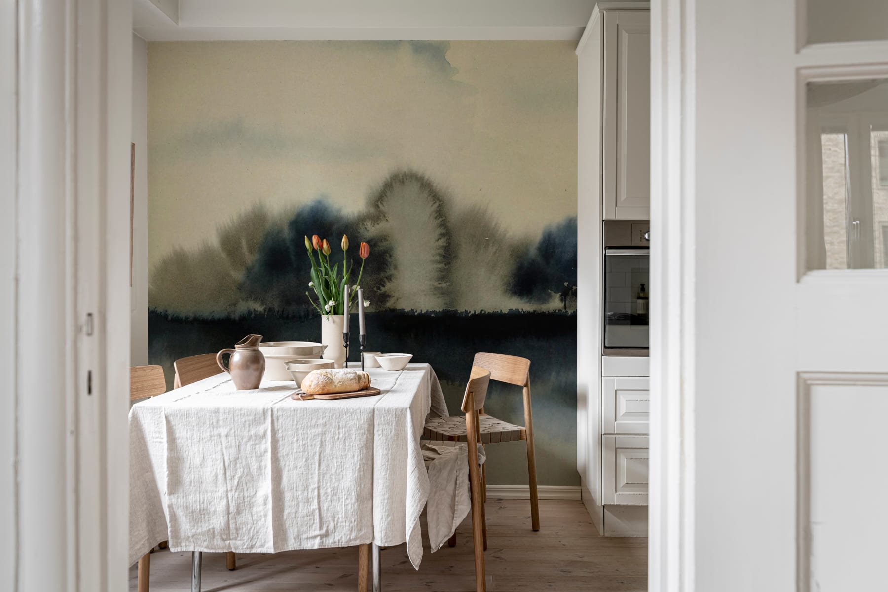 Mural Rebel Walls Mystic Shades Stormy Forest Blue R20169 ma tajemniczy, lekko mroczny charakter. Mgła nadaje kompozycji nie tylko głębi, która pozytywnie wpływa na optykę pomieszczenie, ale też spokojnego, mistycznego charakteru. Rozmyte kontury tworzą wrażenie bezkresu i tajemnicy. Mural wprowadzi do pomieszczeń elementy przyrody w sposób, który jest zarówno inspirujący, jak i kojący. Rebel Walls R20169 Mystic Shades Stormy Forest Blue doskonale wpisuje się we wnętrza skandynawskie, w których dominują naturalne materiały i jasne kolory, jak i również w nowocześnie urządzone miejsca. Dekoracja jest idealnym wyborem dla tych, którzy pragną wprowadzić do swojego domu atmosferę spokoju i relaksu.