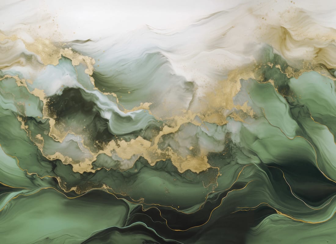 Mural Rebel Walls Pops Gold Stream Green R20236 prezentuje dynamiczny wzór inspirowany strukturą naturalnego kamienia, uzupełniony akcentami przypominającymi metaliczne zdobienia. Układ organicznych smug oraz płynnych przejść tworzy wyrafinowaną kompozycję, która subtelnie nawiązuje do estetyki marmuru o artystycznym wyrazie. Zastosowane kontrasty oraz niuanse kolorystyczne nadają powierzchni głębi i efektu trójwymiarowości. Mural idealnie wpisuje się w stylistykę wnętrz premium – od nowoczesnych, po bardziej dekoracyjne aranżacje. Mural Rebel Walls R20236 Pops Gold Stream Green doskonale sprawdzi się jako dekoracja jednej ściany, stając się centralnym punktem przestrzeni, który nie wymaga dodatkowych ozdób. Model ten równoważy luksusowy charakter z graficzną lekkością, czyniąc wnętrze bardziej wyrazistym i harmonijnym zarazem.