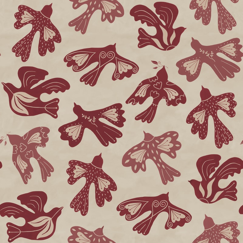 Mural Rebel Walls Symbolic Dancing Wings Red R20517 przedstawia stylizowane ptaki uchwycone w locie, których graficzna forma tworzy dynamiczną, powtarzalną kompozycję. Rozpostarte skrzydła i zróżnicowane układy sylwetek emanują ruchem, budując wrażenie przestrzennej lekkości i energii. Delikatne zdobienia w postaci kropek i spiralnych akcentów nadają dekoracji ilustracyjnej złożoności oraz nieoczywistego charakteru. Model wyróżnia się rytmicznym układem, który doskonale sprawdza się jako element ożywiający minimalistyczne lub nowoczesne aranżacje. Wzór zachowuje równowagę między graficzną precyzją a swobodą kompozycyjną, tworząc spójne tło o artystycznym wyrazie. Mural Rebel Walls R20517 Symbolic Dancing Wings Red wprowadzi do wnętrza pogodny rytm, graficzną lekkość i dekoracyjną swobodę, idealnie uzupełniając przestrzenie potrzebujące wyrazistego, lecz harmonijnego akcentu.