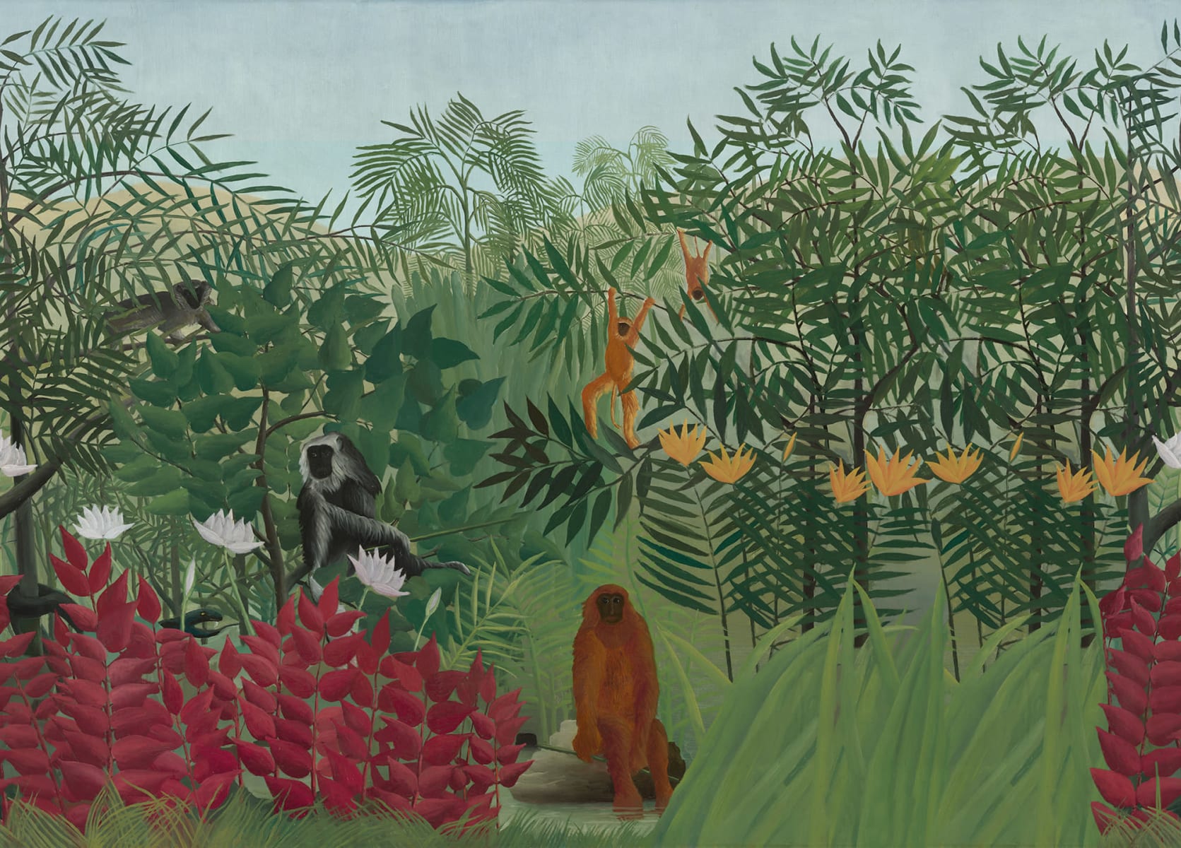 Mural Rebel Walls First Rebels Tropical Forest With Monkeys by Rousseau R20573 to dekoracja inspirowana egzotycznym światem namalowanym przez Henriego Rousseau. Motyw bujnej roślinności oddaje charakterystyczną dla artysty wizję przyrody - pełną tajemniczości i niepowtarzalnego uroku. Mural Rebel Walls First Rebels Tropical Forest With Monkeys by Rousseau R20573 wprowadzi do wnętrza egzotyczny klimat, który ożywi przestrzeń i doda jej wyjątkowego, artystycznego wyrazu. Henri Rousseau był francuskim malarzem samoukiem, którego prace zyskały uznanie dzięki unikalnej, surrealistycznej stylistyce. Jego obrazy zachwycają bogactwem szczegółów i fantazyjnym przedstawieniem egzotycznych krajobrazów. Rebel Walls czerpie z dorobku malarza i proponuje mural prezentujący dzieło Rousseau, który codziennie przenosić będzie domowników w głąb nieodkrytej dżungli. To propozycja dla miłośników sztuki oraz egzotyki, którzy pragną wprowadzić do swoich wnętrz odrobinę artystycznej magii i dzikości natury.