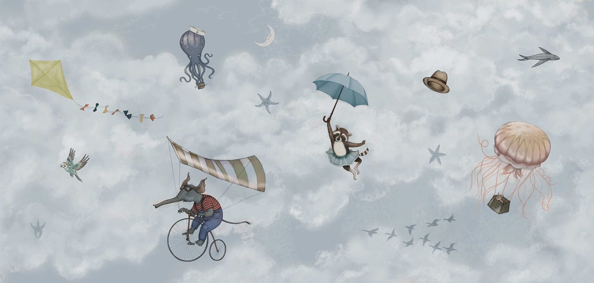 Mural Rebel Walls Family Fun In the Clouds Light Blue R20588 wprowadzi do pokoju dziecięcego eteryczny, przytulny klimat. Dekoracja prezentuje niebo i różnorodne zwierzęta, które wspólnie tworzą oryginalną, ale i harmonijną kompozycję, która doda pomieszczeniom masy uroku i przytulności. Delikatność projektu sprawia, że łatwo jest go zintegrować z różnie urządzonymi miejscami. Mural Rebel Walls Family Fun In the Clouds Light Blue R20588 świetnie prezentuje się w połączeniu z m.in. lekkimi, prostymi meblami oraz pastelowymi akcentami, które podkreślą jego subtelny charakter. Tekstylia o miękkiej fakturze w postaci zasłon, dywanów i poduszek doskonale uzupełnią aranżację, tworząc ciepłe i kojące miejsce. Family Fun In the Clouds to wybór, dzięki któremu pokój dziecięcy stanie się spokojnym i pełnym uroku zakątkiem, który jest idealny zarówno do zabawy, jak i wypoczynku.