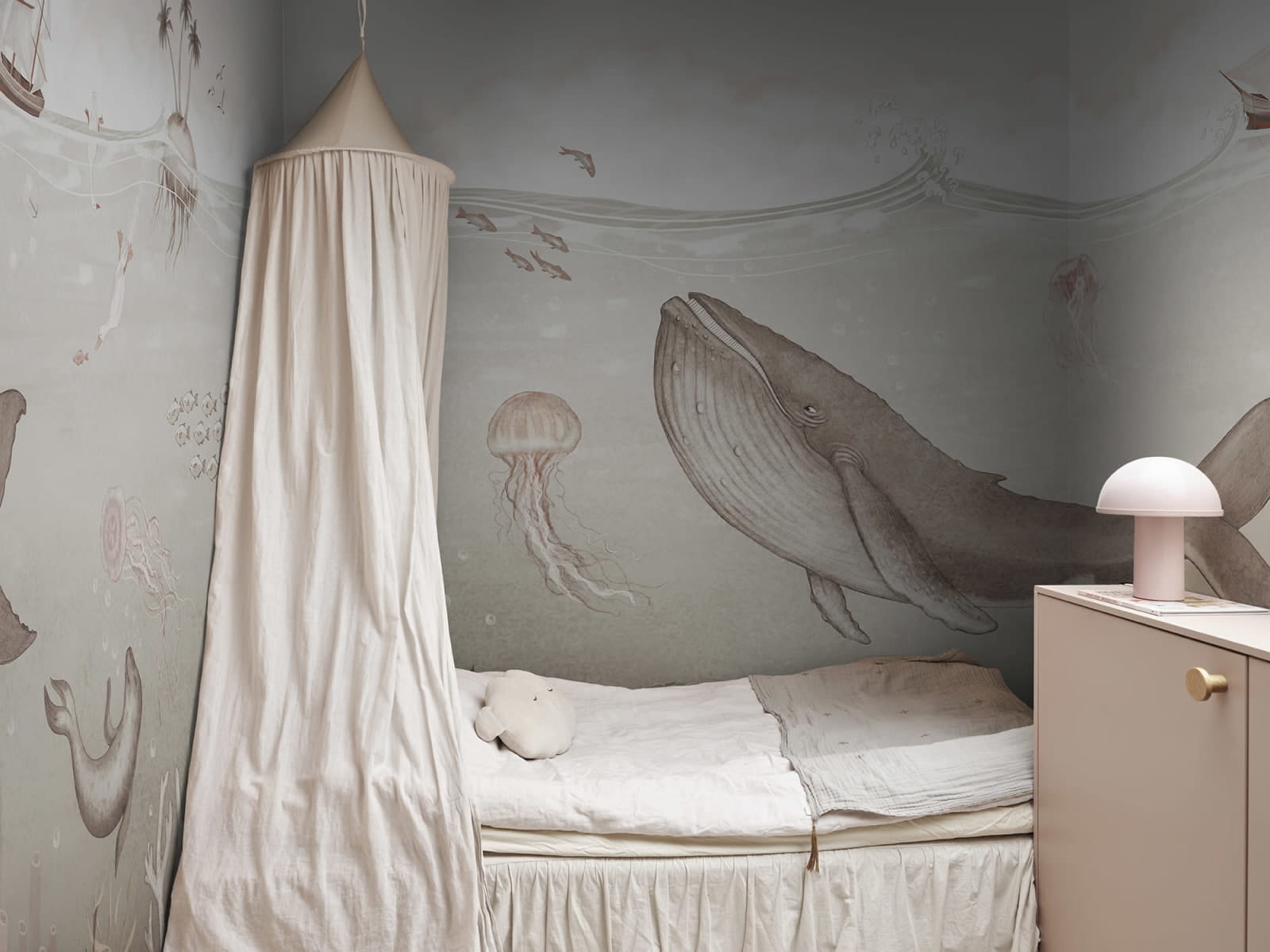 Mural Rebel Walls Family Fun Under the Sea Beige R20615 wprowadzi do pokoju dziecięcego magiczny, podwodny krajobraz. Dekoracja każdej przestrzeni doda eterycznego, przytulnego klimatu, który sprzyja zarówno kreatywnym zabawom, jak i odpoczynkowi. Dzięki temu modelowi ściany zyskają niezwykłej głębi. Mural Rebel Walls Family Fun Under the Sea Beige R20615 idealnie zintegruje się z miękkimi tekstyliami, pastelowymi dodatkami i prostymi, minimalistycznymi meblami - stworzy z nimi doskonałe miejsce do zabawy i nauki. To ponadczasowy wybór, który nie tylko udekoruje pokój dziecięcy, ale również stworzy w nim wyjątkowy, przytulny klimat. Za powstanie tego muralu odpowiada utalentowana ilustratorka - Johanna Magoria