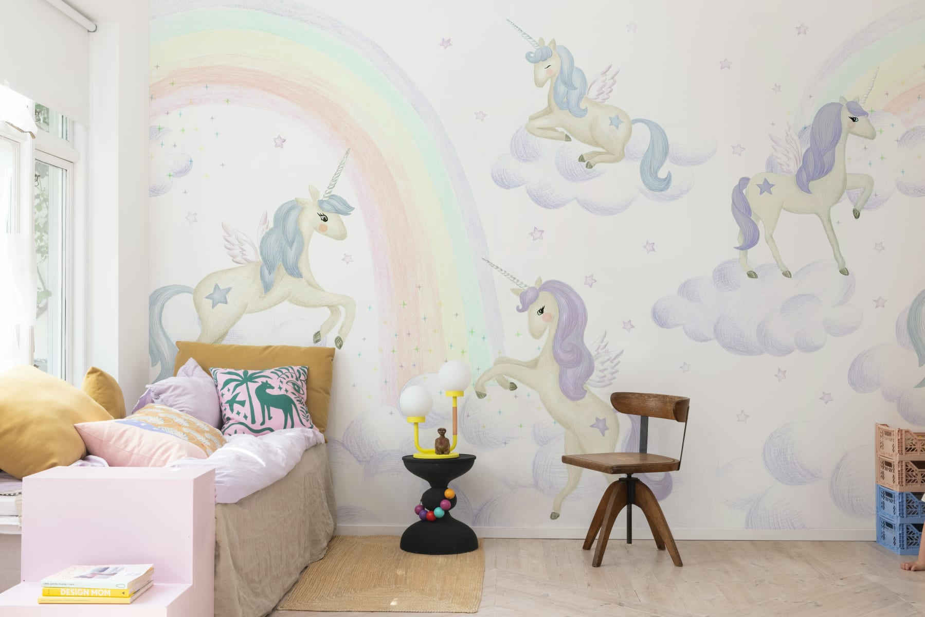 Mural Rebel Walls Family Fun Unicorn Sky Lilac R20617 wprowadzi do dziecięcego pokoju atmosferę baśniowej krainy. Delikatne linie oraz subtelne detale tworzą spokojną i magiczną kompozycję. Dekoracja pozwala maluchom przenieść się do świata fantazji, pełnego marzeń i przygód, co czyni ją idealnym rozwiązaniem do sypialni czy kącika zabaw. Wnętrze z tym muralem nabierze przyjaznego i harmonijnego charakteru, który sprzyja odpoczynkowi, a jednocześnie pobudza kreatywność. Świetnie komponuje się z meblami o prostych formach, które wykonano z naturalnych materiałów, takich jak drewno czy rattan. Dodatki w postaci miękkich dywanów, przytulnych poduszek i pastelowych lamp doskonale podkreślą subtelny klimat muralu. Rebel Walls Family Fun Unicorn Sky Lilac R20617 to idealny wybór dla rodziców, którzy chcą stworzyć dziecku przestrzeń pełną ciepła i przytulności, w której maluch może swobodnie marzyć i odpoczywać.