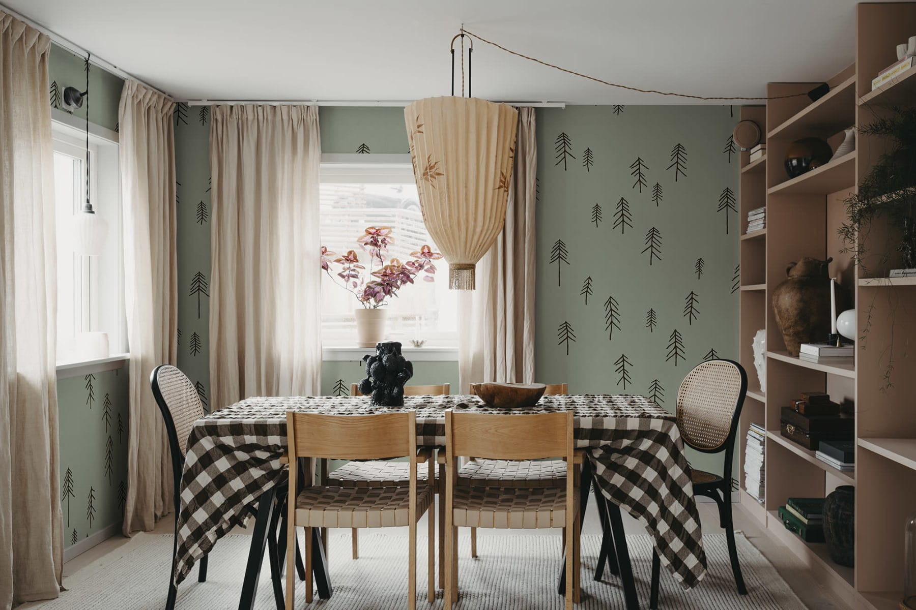 Rebel Walls R20639 Fine Little Day Tall Lightgreen - mural w skandynawskie rysunki choinek
