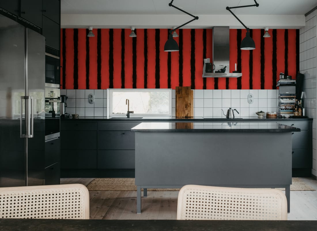 Mural Rebel Walls Pops Painted Stripes Red R20675 przedstawia pionowe pasy o nieregularnych konturach, ręcznie malowanych pociągnięciach, które wyróżniają się na tle intensywnej czerwieni. Graficzna kompozycja oparta na kontrastach między głęboką czernią a nasyconym tłem przyciąga wzrok i nadaje wnętrzu silnego, ekspresyjnego charakteru. Dekoracja emanuje energią i stanowi dominujący element aranżacyjny, idealny do przestrzeni, w których priorytetem jest odwaga projektowa i wyrazista tożsamość wizualna. Mural Rebel Walls R20675 Pops Painted Stripes Red sprawdza się w nowoczesnych jadalniach, loftowych salonach i wnętrzach o eklektycznym stylu. W połączeniu z prostymi meblami i ograniczoną paletą dodatków wzmacnia indywidualny charakter aranżacji. To rozwiązanie dla wnętrz, które wymagają mocnego akcentu i atmosfery intensywności podkreślającej dynamikę przestrzeni.