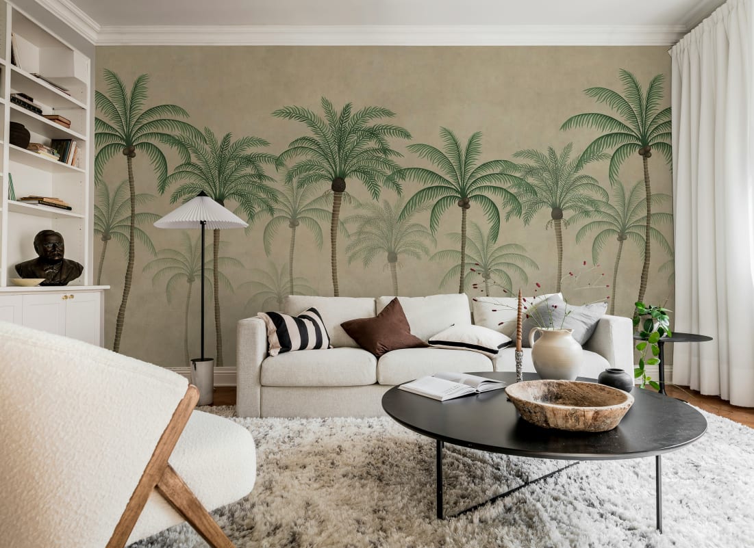 Mural Rebel Walls Eden Escape Palm Parade Beige R20913 prezentuje zrównoważoną kompozycję smukłych palm, które wprowadzają do wnętrza rytm i porządek inspirowany naturą. Detaliczny rysunek liści podkreśla artystyczną precyzję wzoru, a jego symetria dodaje ścianie spokoju i harmonii. Mural doskonale współgra z aranżacjami modern classic, gdzie podkreśla elegancki charakter przestrzeni, oraz z boho, w którym akcentuje organiczny i przyjazny klimat wnętrza. W połączeniu z drewnem, plecionkami i miękkimi tkaninami tworzy wyważoną, przytulną całość. Mural Rebel Walls R20913 Eden Escape Palm Parade Beige dodaje przestrzeni ciepła, wyrafinowania i subtelnej elegancji inspirowanej tropikalnym pejzażem.